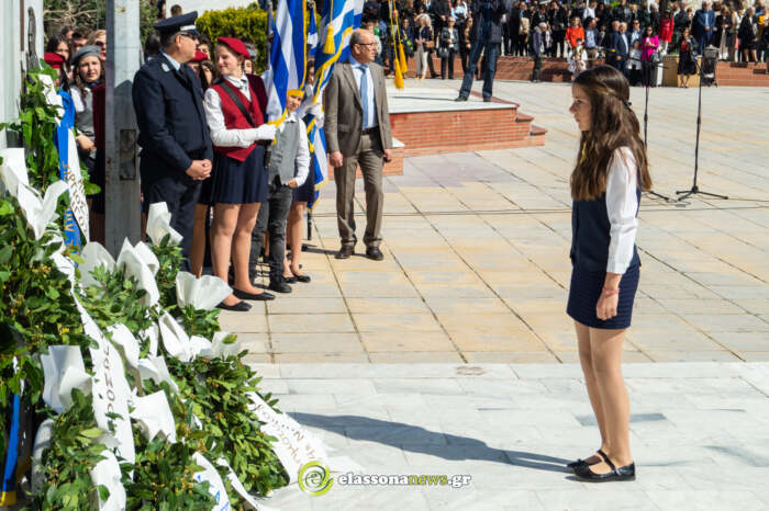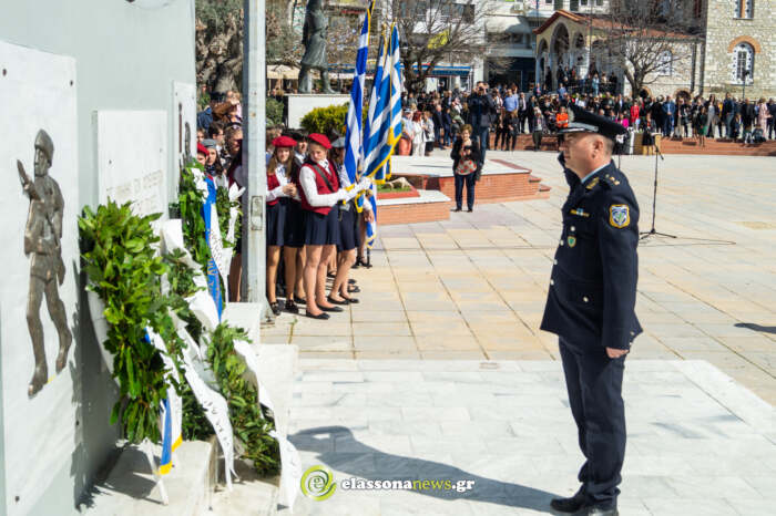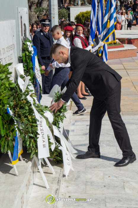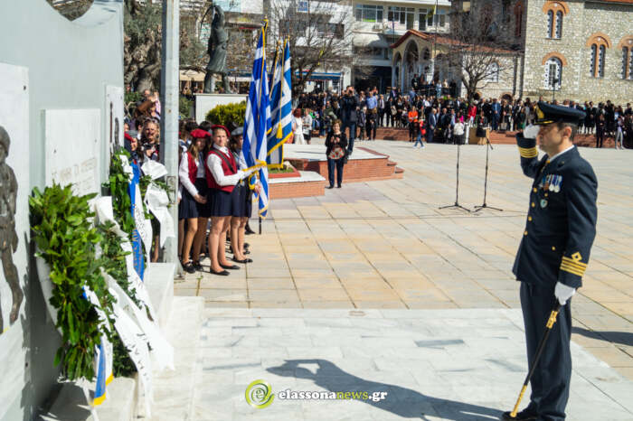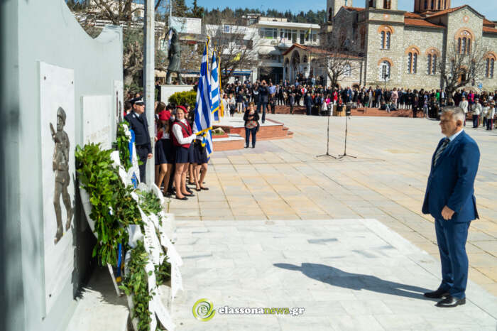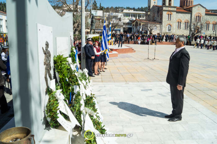 Η επίσημη δοξολογία πραγματοποιήθηκε στον Μητροπολιτικό ιερό ναό Αγίου Δημητρίου χοροστατούντος του Μητροπολίτης Ελασσόνως κκ Χαρίτωνα. Αμέσως μετά, οι επίσημοι και ο κόσμος κατευθύνθηκαν στον χώρο του Μνημείου των Πεσόντων, στην Κεντρική πλατεία, όπου ακολούθησε επιμνημόσυνη δέηση και στη συνέχεια έγινε η μαθητική παρέλαση στην κεντρική πλατεία.