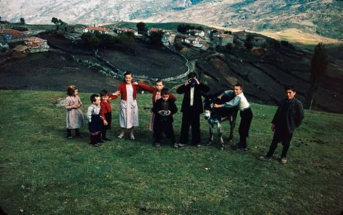 70 χρόνια πριν: Παιδιά φωτογραφίζονται με φόντο το χωριό Πουλιάνα Ελασσόνας (φωτο)