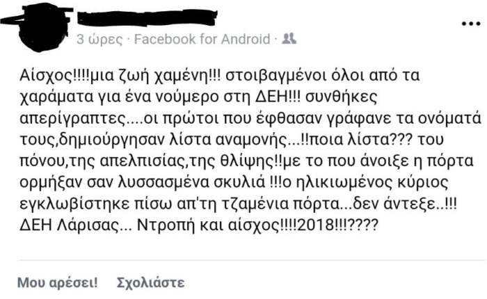 Kαταγγελία γυναίκας μέσω Facebook για το περιστατικό: