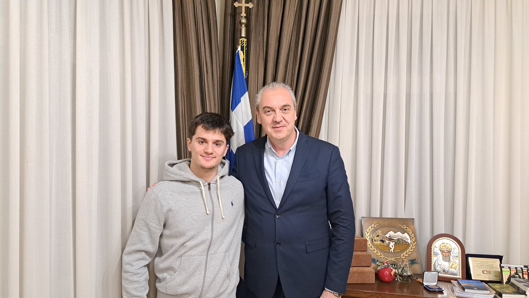 Με ιδιαίτερη χαρά και υπερηφάνεια υποδέχτηκα στο Δημαρχείο Ελασσόνας τον πρωταθλητή αλπικού σκι Βασίλη Παλάντζα και τον συνεχάρην για την σπουδαία επίδοσή του στο Παγκόσμιο Πρωτάθλημα Αλπικού #ski στην κατηγορία U18.