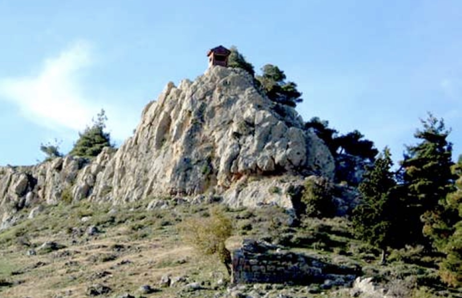 Αμέσως μετά το χωριό Σκήτη πάνω σε έναν απότομο και υψηλό λόφο σχηματίζεται ένα πλάτωμα όπου διατηρούνται τείχη σε μήκος περίπου δύο χιλιομέτρων, υπολείμματα πύργων, τα ερείπια μιας δεξαμενής, ερείπια κτισμάτων. Το σωζόμενο ύψος στα τείχη φτάνει τα 3 μ., ενώ ένας τετράγωνος πύργος στη νότια πλευρά έχει ύψος 6 μ. περίπου. Τα ερείπια αυτά ανήκουν σε κάποια μεσαιωνική οχυρωμένη πόλη η οποία δέσποζε στη νοτιοδυτική πλευρά του Κισσάβου και στη βόρεια του Μαυροβουνίου και έλεγχε τον δρόμο που οδηγούσε από τον Αγιόκαμπο στη Λάρισα. Σημαντικό λόγω της θέσης, του μεγέθους και των οικιστικών λειψάνων που διασώζει. Εδώ τοποθετείται η βυζαντινή Κενταυρόπολη, τα τείχη της οποίας επισκεύασε ο Ιουστινιανός, μαζί με εκείνα των Ευρυμενών.