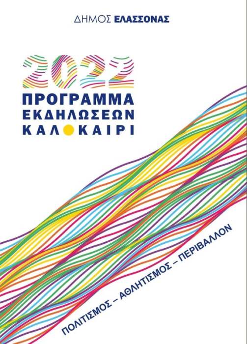 «Πλούσιο» και εντυπωσιακό θα είναι το φετινό πρόγραμμα των καλοκαιρινών εκδηλώσεων που οργανώνει ο Δήμος Ελασσόνας , η Αντιδημαρχία Πολιτισμού και ο Οργανισμός Κοινωνικής Προστασίας, Αλληλεγγύης και Παιδείας (ΟΚΠΑΠ), σε συνεργασία με πολιτιστικούς και αθλητικούς συλλόγους, φορείς και εθελοντές, με τίτλο «Καλοκαίρι 2022: Πολιτισμός-Αθλητισμός-Περιβάλλον»