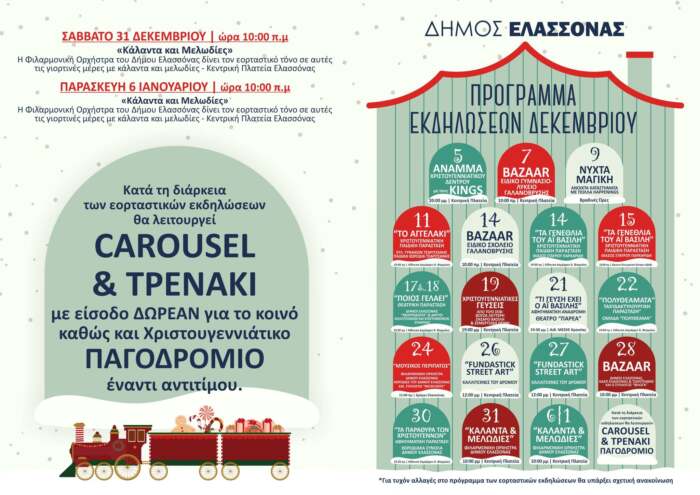 Αυτό είναι το εορταστικό πρόγραμμα εκδηλώσεων στην Ελασσόνα