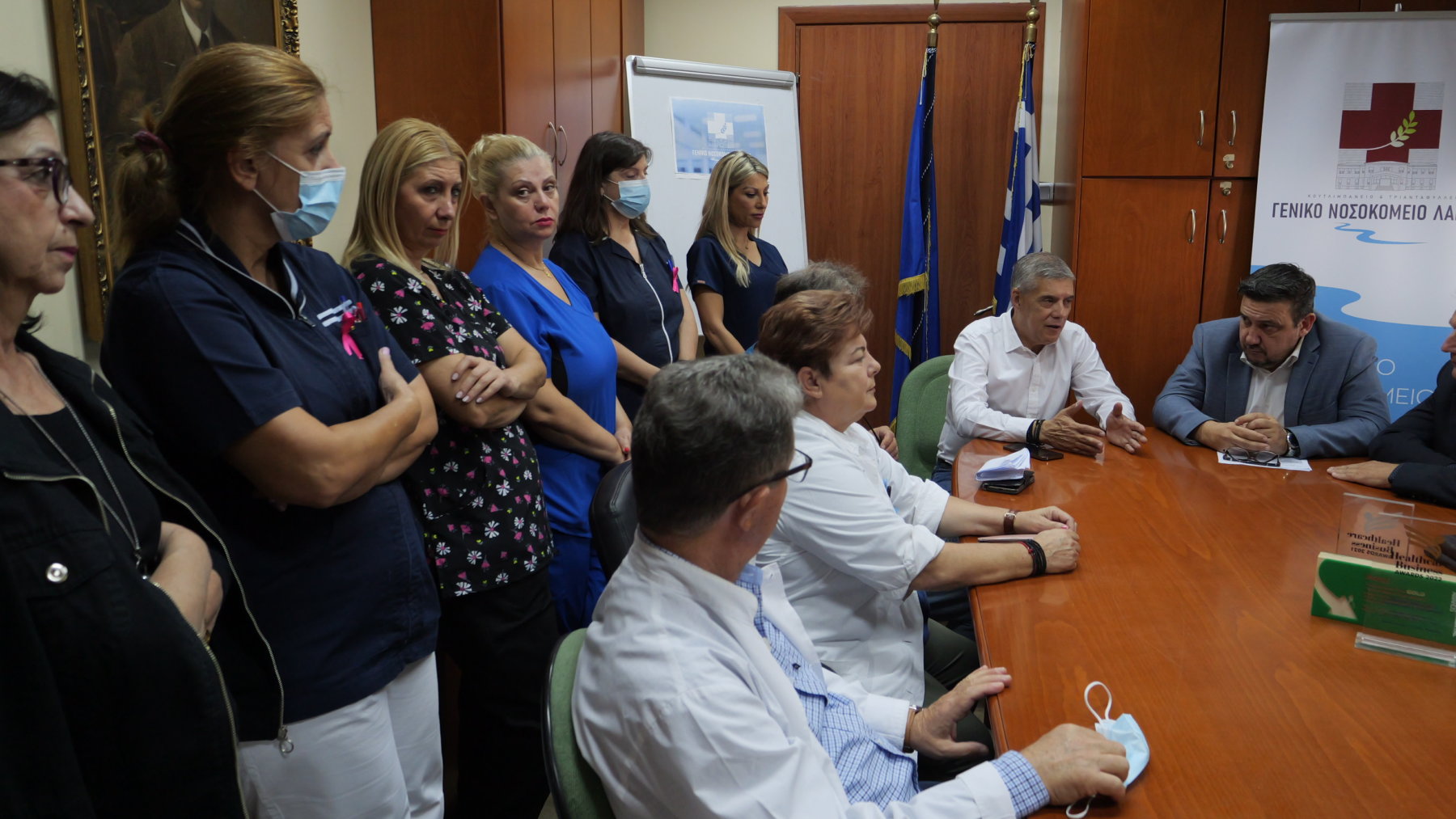 Από την πλευρά τους οι γιατροί ευχαρίστησαν τον Περιφερειάρχη για την ενίσχυση των Κλινικών του Νοσοκομείου με σύγχρονο εξοπλισμό και μηχανήματα που χρηματοδοτήθηκαν από το ΕΣΠΑ της Περιφέρειας Θεσσαλίας και για την νέα πτέρυγα του Νοσοκομείου, η κατασκευή της οποίας αναβαθμίζει τις κτιριακές υποδομές και το επίπεδο των υπηρεσιών υγείας στη Λάρισα και σε όλη τη Θεσσαλία.