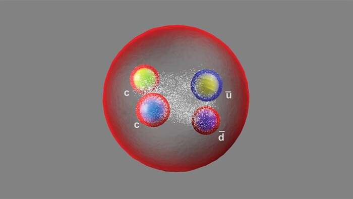 Τα περισσότερα νέα αδρόνια -όπως και το νέο που βρέθηκε- έχουν ανακαλυφθεί από τον LHCb, έναν από τους τέσσερις γιγάντιους ανιχνευτές που βρίσκονται στο κυκλικό τούνελ μήκους 27 χιλιομέτρων του μεγάλου επιταχυντή. Το νέο σωματίδιο -ένα αδρόνιο με τέσσερα κουάρκ- ονομάστηκε Tcc+. Έχει μάζα περίπου τετραπλάσια από ένα πρωτόνιο.