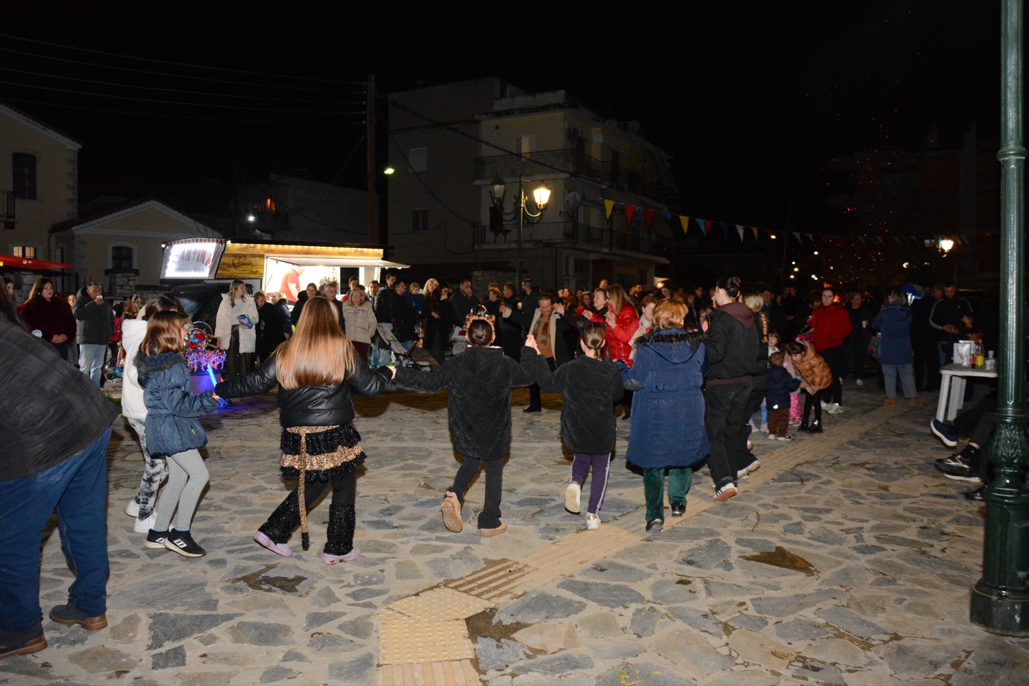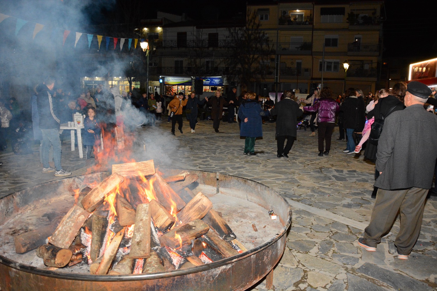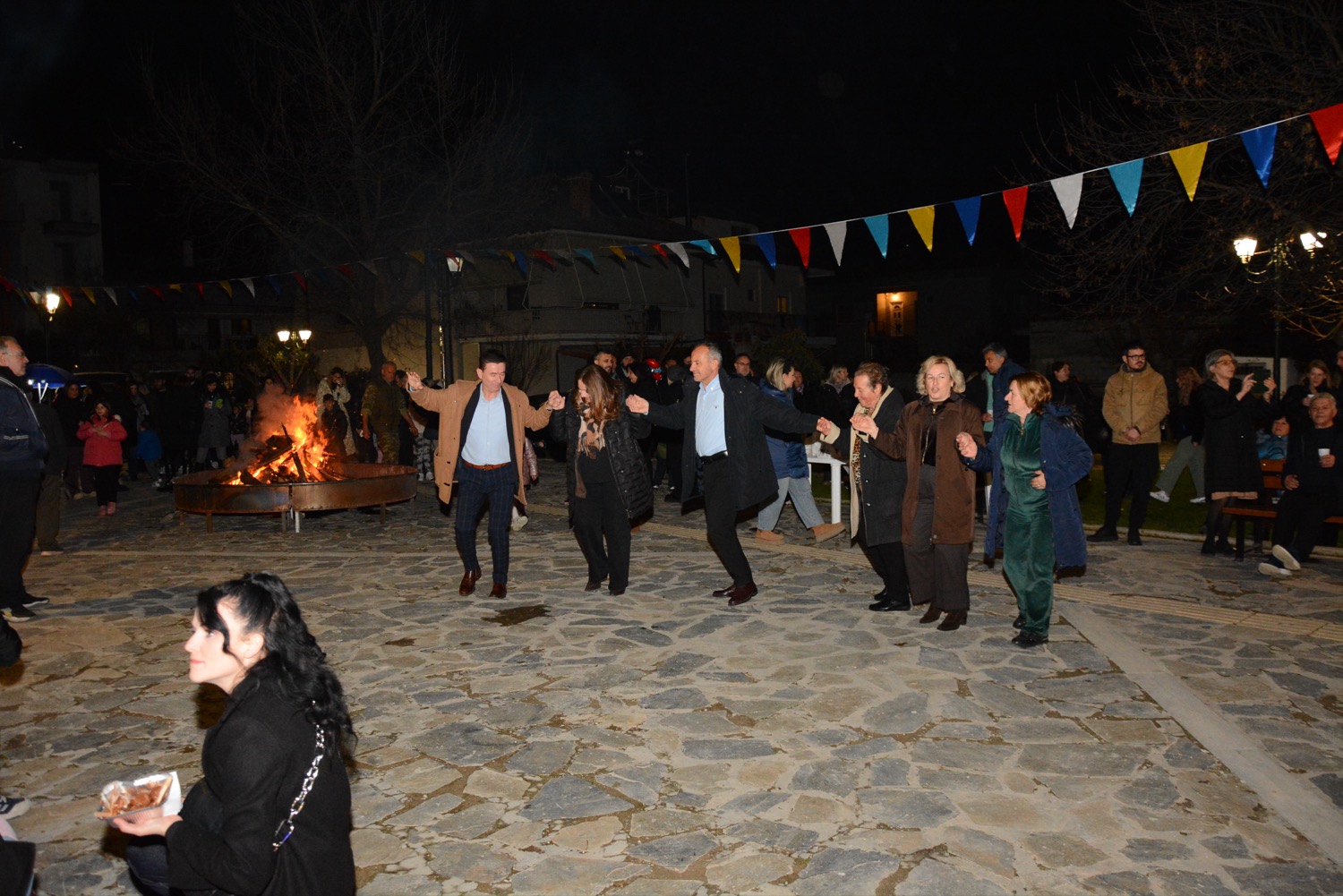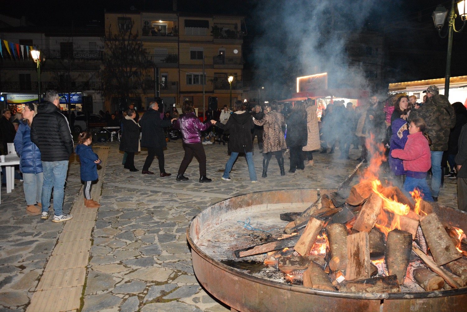 Διασκέδαση χθες με χορό δίπλα στην φωτιά στην πλατεία Μικρασιατών, με παραδοσιακό γλέντι και την ορχήστρα του Δημήτρη Μιχαλέ