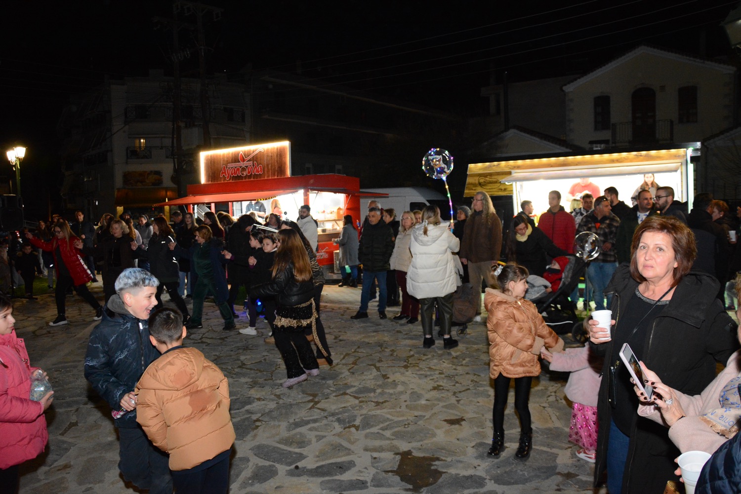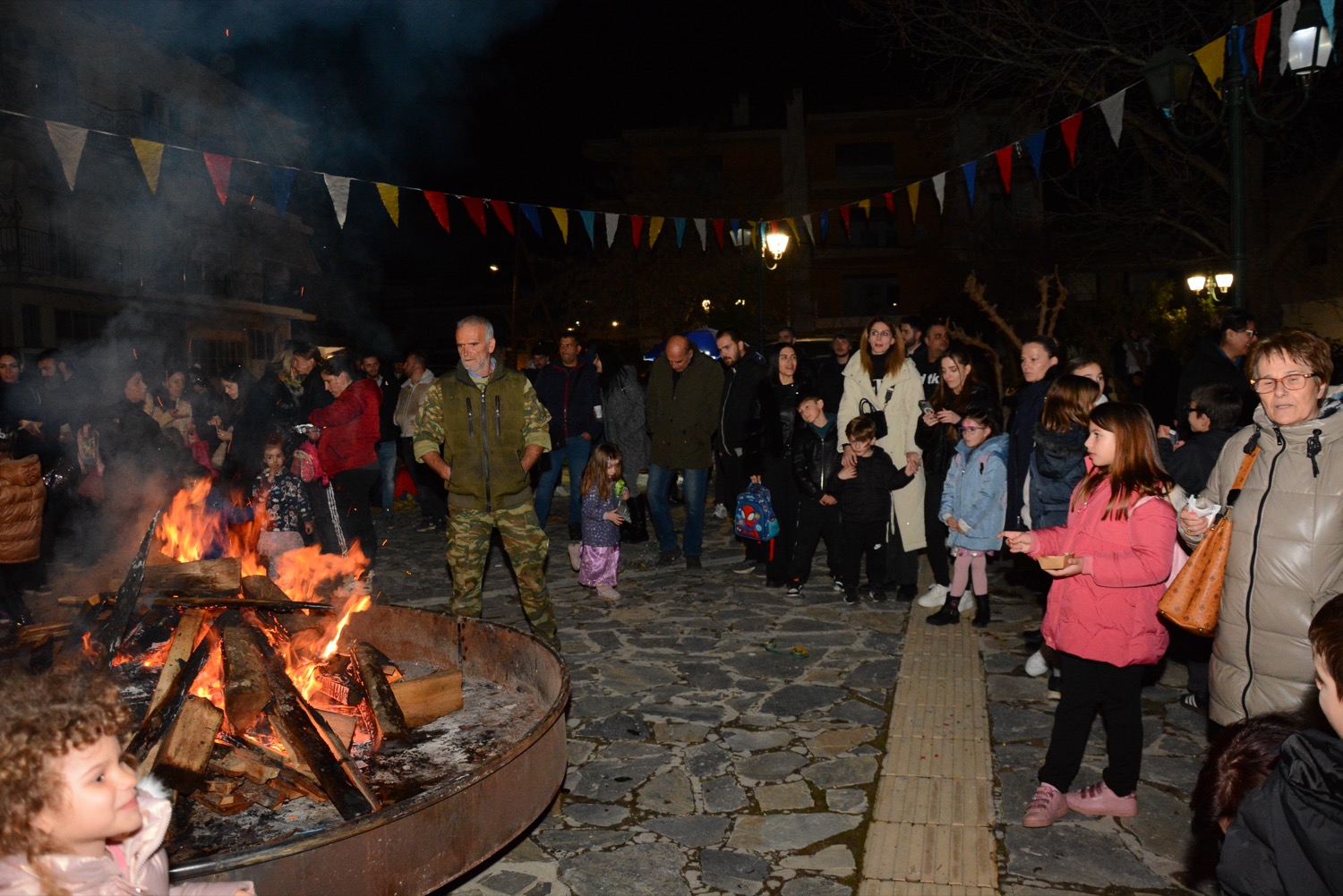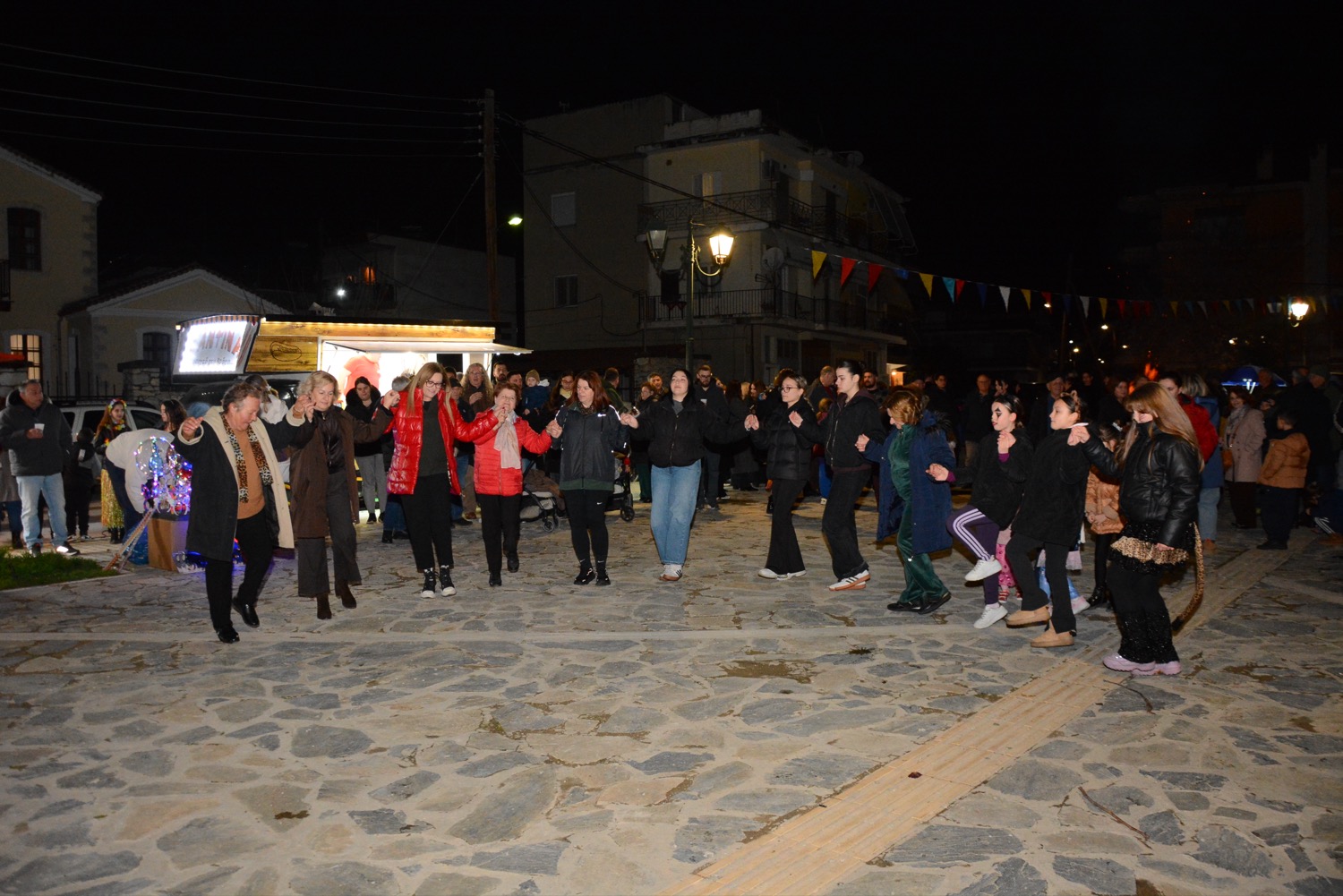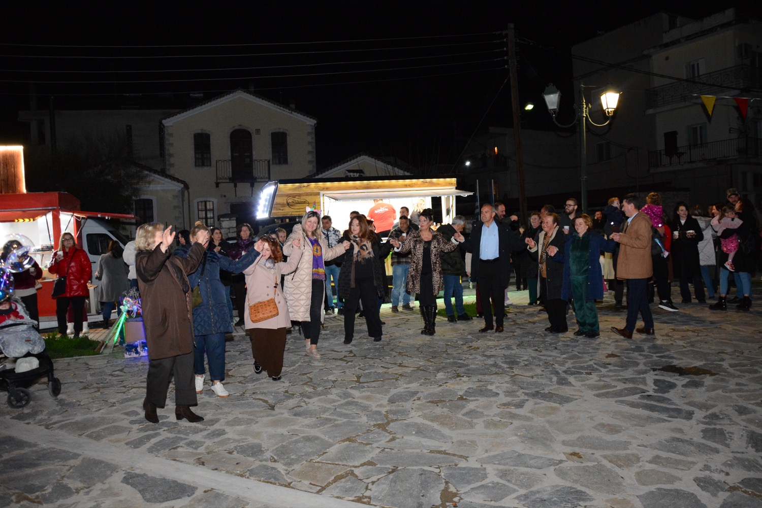 Διασκέδαση χθες με χορό δίπλα στην φωτιά στην πλατεία Μικρασιατών, με παραδοσιακό γλέντι και την ορχήστρα του Δημήτρη Μιχαλέ