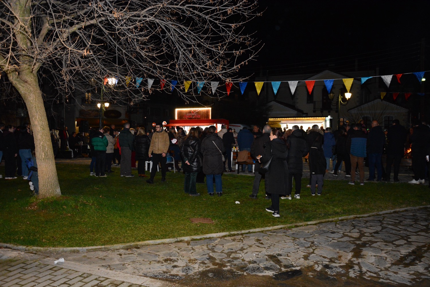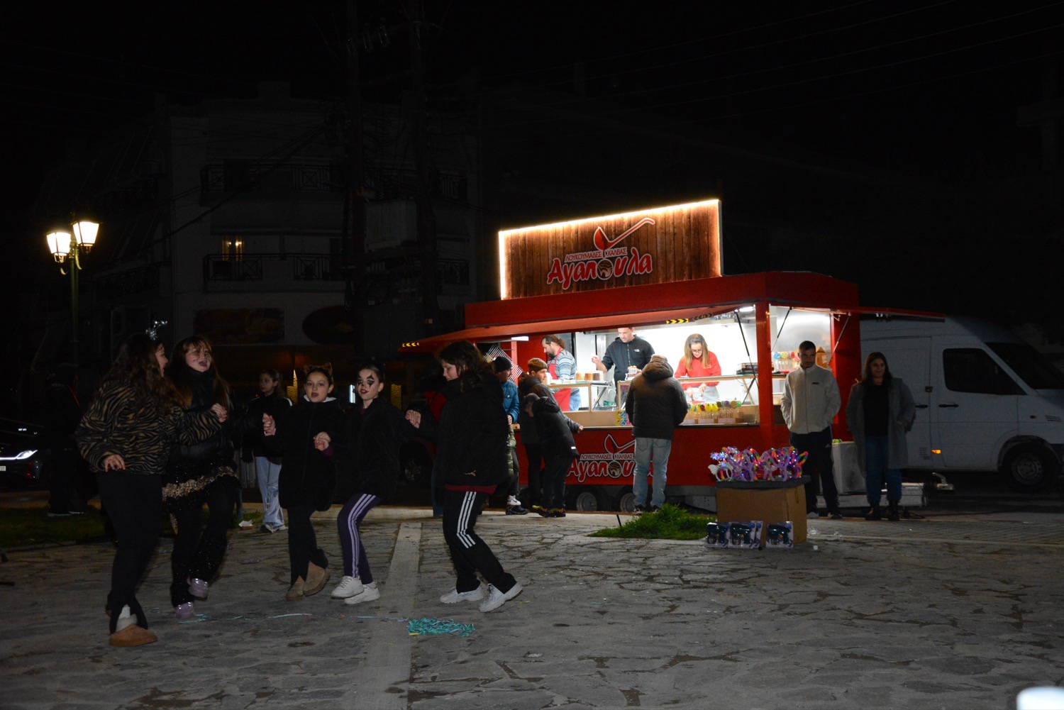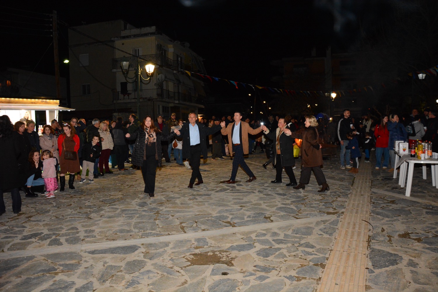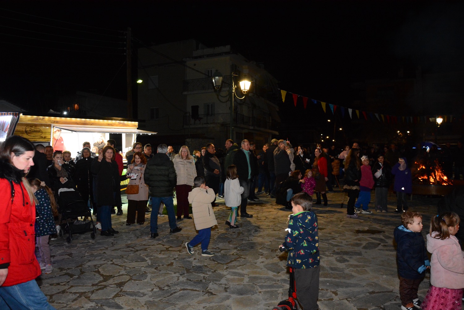 Διασκέδαση χθες με χορό δίπλα στην φωτιά στην πλατεία Μικρασιατών, με παραδοσιακό γλέντι και την ορχήστρα του Δημήτρη Μιχαλέ