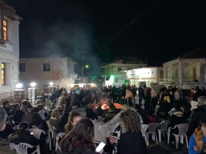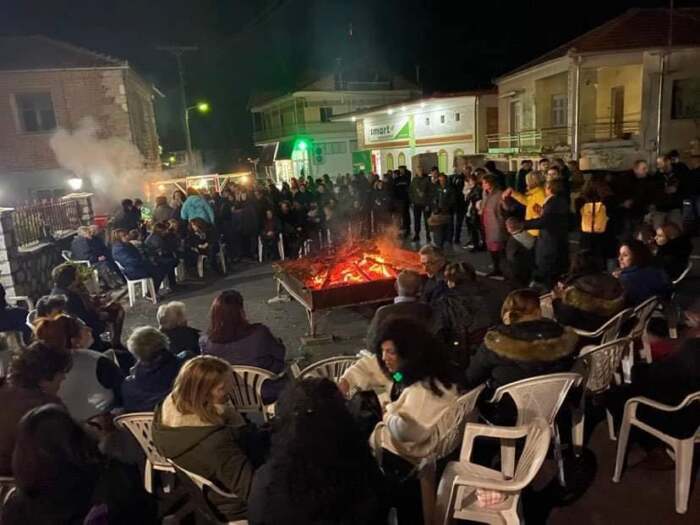 Άνθρωποι κάθε ηλικίας συμμετείχαν στην εκδήλωση, έφαγαν λουκάνικα και σουβλάκια, ήπιαν κρασί και το χάρηκαν με το παραπάνω χορεύοντας γύρω από την φώτια.