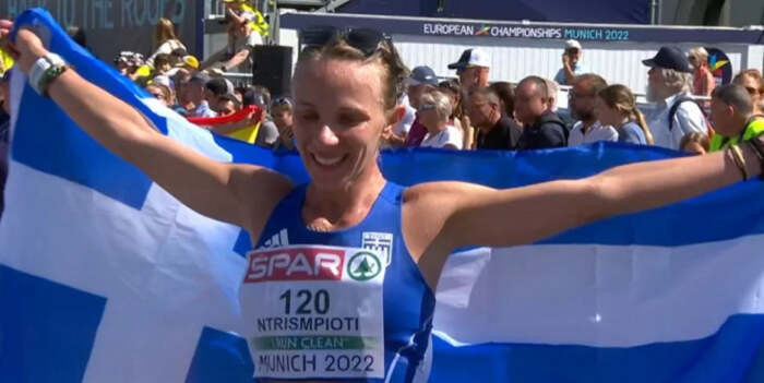 Στο πιο ψηλό σκαλί του βάθρου ανέβηκε η Αντιγόνη Ντρισμπιώτη, η οποία αναδείχτηκε Πρωταθλήτρια Ευρώπης στα 35 χιλιόμετρα βάδην και χάρισε την Ελλάδα στο χρυσό μετάλλιο στη διοργάνωση.