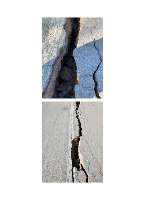 Στα υπόλοιπα τμήματα της Επαρχιακής Οδού και της Δημοτικής Οδού παρουσιάζονται μικρότερες καθιζήσεις και ρηγματώσεις τόσο στο σώμα κυκλοφορίας όσο στα πρανή της οδού. Απαιτείται τοπική ενίσχυση των πρανών με τη χρήση λιθορριπής, τοπική ανακατασκευή της οδοστρωσίας και εκ νέου ασφαλτόστρωση σε μεγάλα τμήματα αυτών.