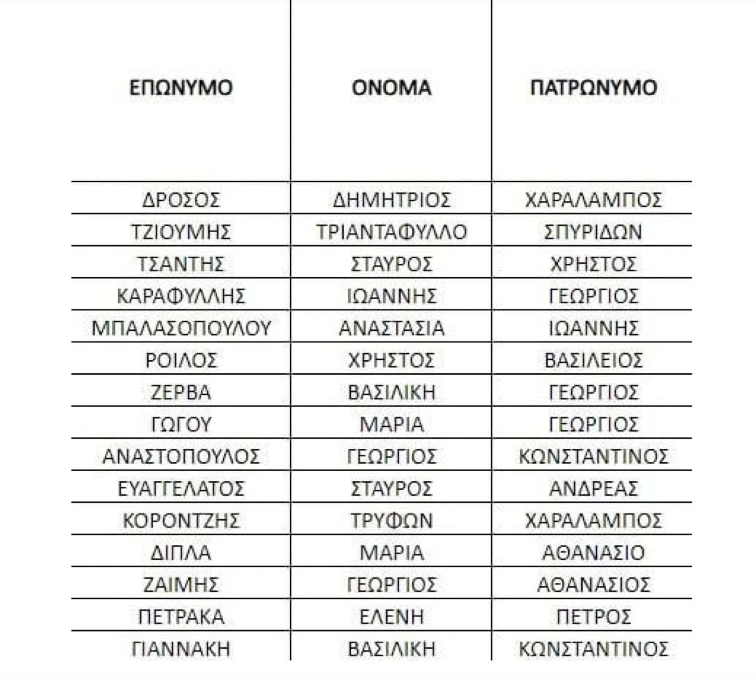 Δείτε όλα τα ονόματα και για τις 7 Υγειονομικές Περιφέρειες