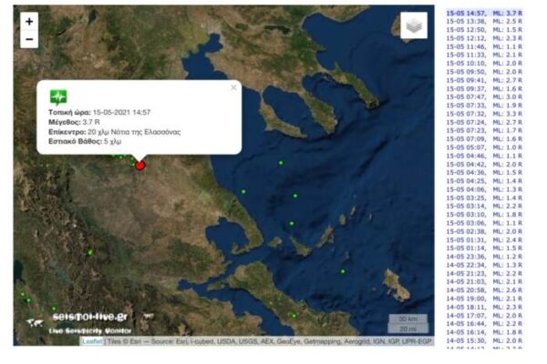 Σεισμός 3,7 Ρίχτερ κούνησε την Ελασσόνα το μεσημέρι Σαββάτου