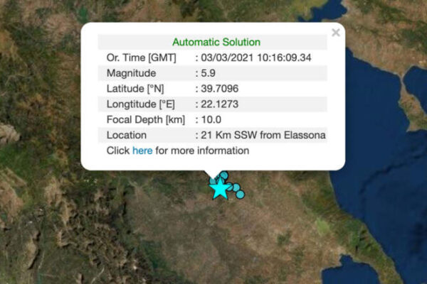 Σεισμός ΤΩΡΑ στην Ελασσόνα
