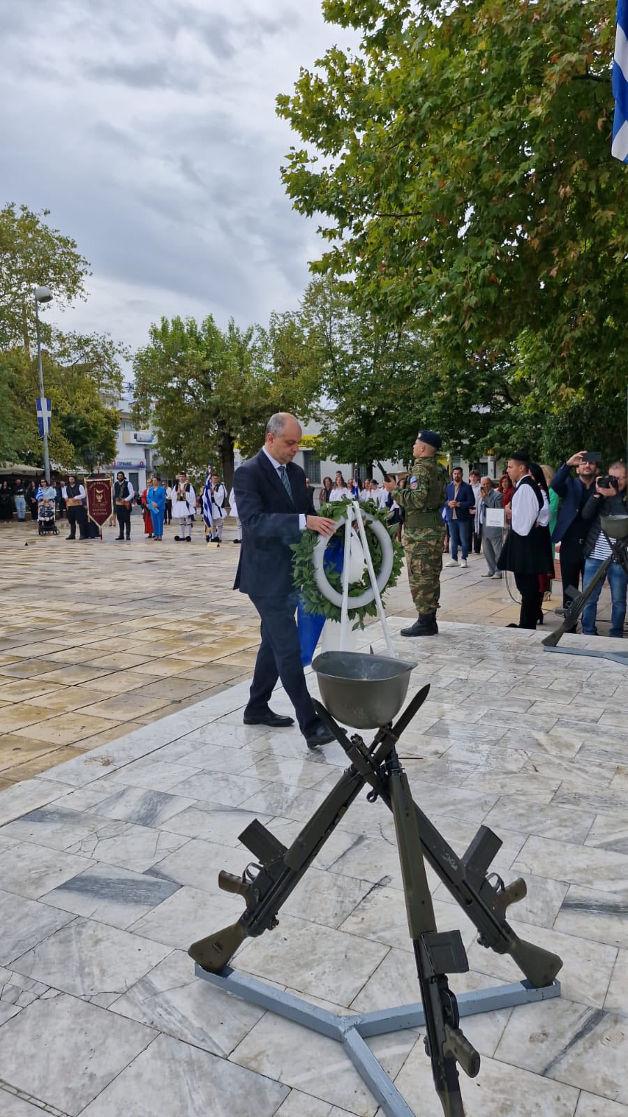 Ακολούθως, κατέθεσε στεφάνι στο Ηρώο των Πεσόντων στην κεντρική πλατεία της πόλης, αποτίοντας φόρο τιμής σε όσους αγωνίστηκαν και θυσιάστηκαν για την ελευθερία της πατρίδας.