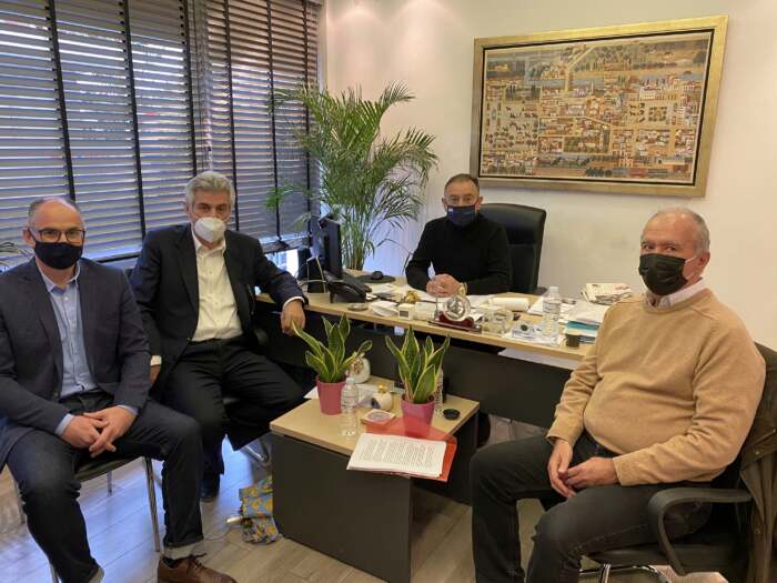 Συνάντηση με τον αν. Γραμματέα της ΚΟ της ΝΔ, βουλευτή Ν. Λαρίσης κ. Χρήστο Κέλλα είχαν οι εκπρόσωποι των τριών μεγάλων κονσερβοποιείων του νομού κ.κ. Αστέριος Τσαγκούλης (Δ/νων Σύμβουλος Intercomm Foods), Χαράλαμπος Σαμολαδάς (Δ/ντης Παραγωγής Εταιρίας Del Monte) και Νίκος Ποδαράς (Οικονομικός Δ/ντης ΕΛΒΑΚ).