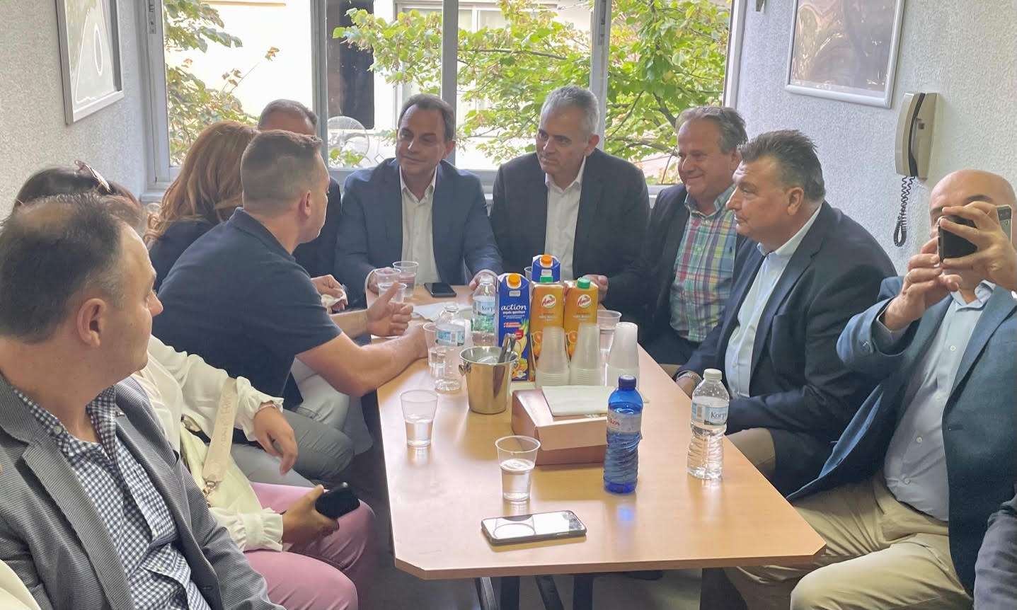 Στη συνέχεια είχαν την ευκαιρία να ανταλλάξουν απόψεις με τον πρόεδρο κ. Γιώργο Γιαννούλα και στελέχη της ΔΗΜΤΟ ΝΔ Ελασσόνας στα νέα γραφεία της Οργάνωσης.