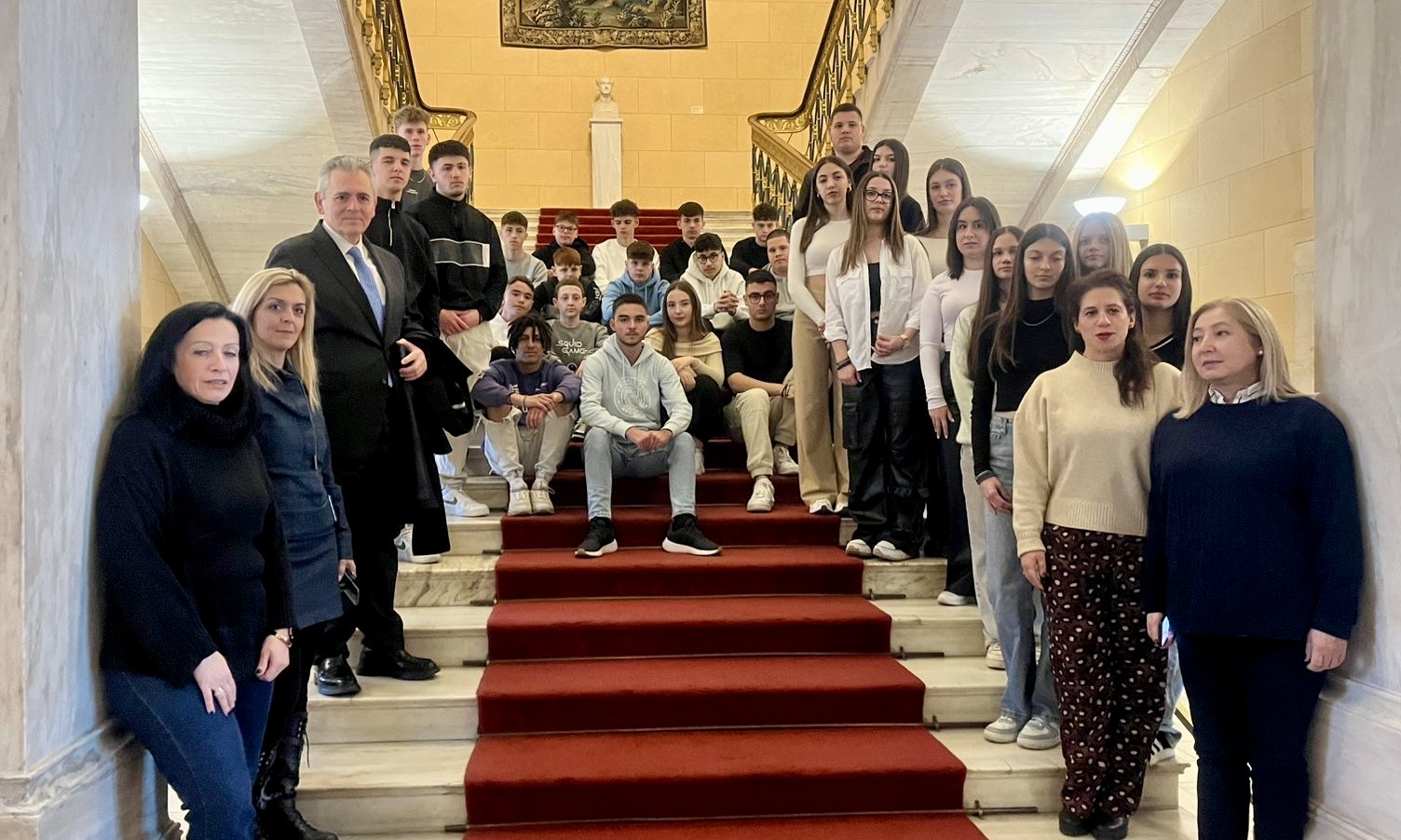 Τα παιδιά από την Κρανιά και το Λουτρό Ελασσόνας συνόδευαν στην εκπαιδευτική τους εκδρομή στο κοινοβούλιο οι εκπαιδευτικοί, οι κυρίες Μαριάννα Τυχερού (επικεφαλής της αποστολής), Μαρία Αθηνά Ρίζου, Κωνσταντίνα Τσουκνικά και Αγορή Κριτσιλά.
