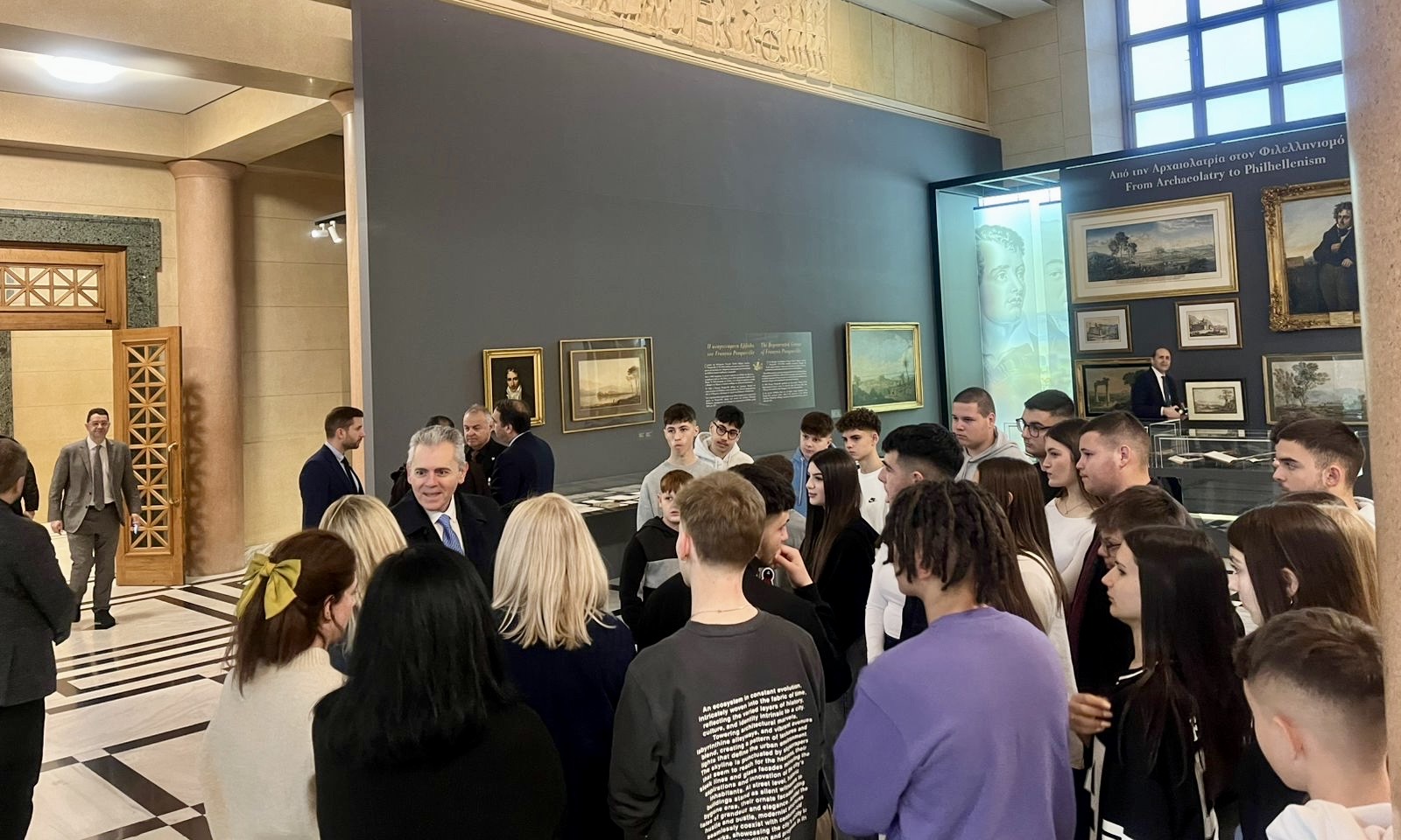 Ο Θεσσαλός πολιτικός αναφέρθηκε στο «κεκτημένο της χώρας», την ένταξη της στην ΕΕ, «ιδιαίτερα σε μια περίοδο διεθνών αναταράξεων, όπως αυτή που ζούμε. Μπορεί όλοι να ασκούμε κριτική για επιμέρους αδυναμίες της ΕΕ, για έλλειμμα ηγεσίας, αλλά γιατί οι κατατρεγμένοι όλου του κόσμου θέλουν να έρθουν στην Ευρώπη; Διότι, παρά τις όποιες αδυναμίες, εξακολουθεί να είναι ο καλύτερος τόπος για να ζει κανείς σε συνθήκες ελευθερίας, δημοκρατίας, σεβασμού των ανθρωπίνων δικαιωμάτων, κράτους πρόνοιας και υποδομών, που προσφέρουν ποιοτικότερες υπηρεσίες σε σχέση με άλλα σημεία του κόσμου. Τούτο, βεβαίως, δεν σημαίνει ότι δεν πρέπει να αγωνιζόμαστε για να βελτιώνουμε διαρκώς την ΕΕ. Εύχομαι να έχετε καλή πρόοδο στη ζωή σας και να είστε ενεργοί πολίτες!».