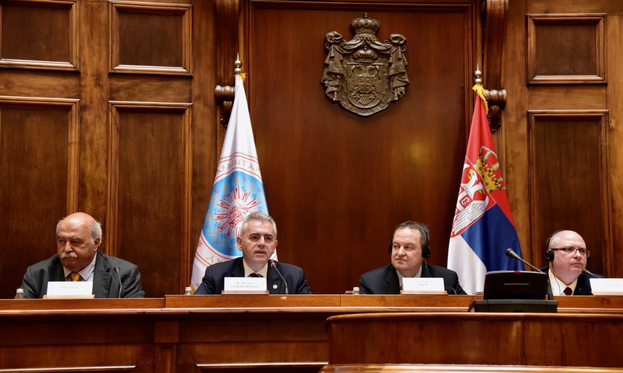 «Η ορθόδοξη Εκκλησία στα Βαλκάνια, κατά την περίοδο της τουρκοκρατίας, αποτέλεσε καθοριστικό στοιχείο στην αντίσταση απέναντι στον ξένο δυνάστη, κυρίως στο πνευματικό πεδίο. Γι’ αυτό και είναι ταυτισμένη με την ταυτότητα των λαών μας, δεμένη αδιάλυτα με τις παραδόσεις και τα βιώματά του. Αυτή η αίσθηση της ενότητας, το Βυζάντιο μετά το Βυζάντιο, κατά τη ρήση του Γιόργκα, συνιστά τη σπουδαιότερη κοινή κληρονομιά μας, που πρέπει να διαφυλάξουμε και να διευρύνουμε απέναντι στις σύγχρονες προκλήσεις και απειλές». Τα παραπάνω ανέφερε ο Γενικός Γραμματέας της Διακοινοβουλευτικής Συνέλευσης Ορθοδοξίας (ΔΣΟ), Μέλος της Βουλής των Ελλήνων, δρ Μάξιμος Χαρακόπουλος, στην προσφώνησή του προς τον πρόεδρο της σερβικής βουλής κ. Ίβιτσα Ντάσιτς, κατά την συνάντηση που είχαν μαζί με τον πρόεδρο της Γ.Σ της ΔΣΟ, Μέλος της Ρωσικής Δούμα, κ. Σεργκέι Γκαβρίλοφ, στην έδρα του Σερβικού κοινοβουλίου, με αφορμή τη συνεδρίαση της Διεθνούς της Γραμματείας στο Βελιγράδι.