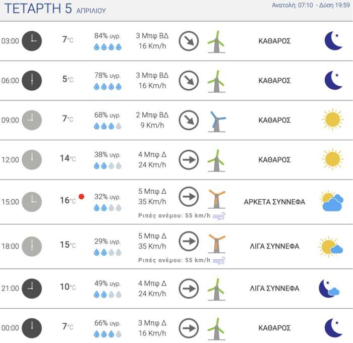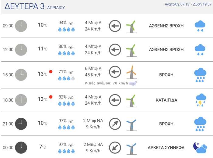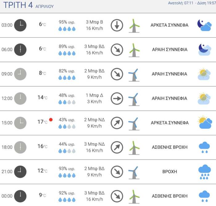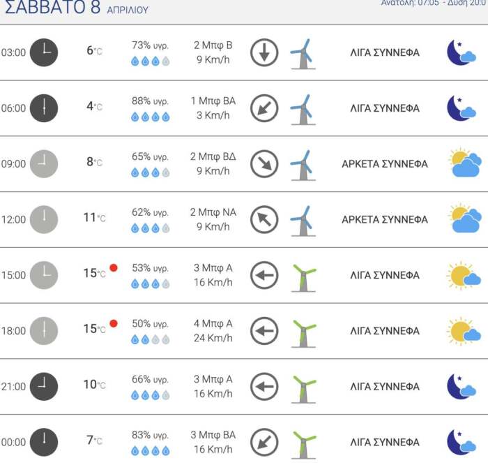 Δείτε αναλυτικά τι καιρό θα κάνει στην πόλη μας σήμερα και όλη την εβδομάδα μέχρι και το Σάββατο: