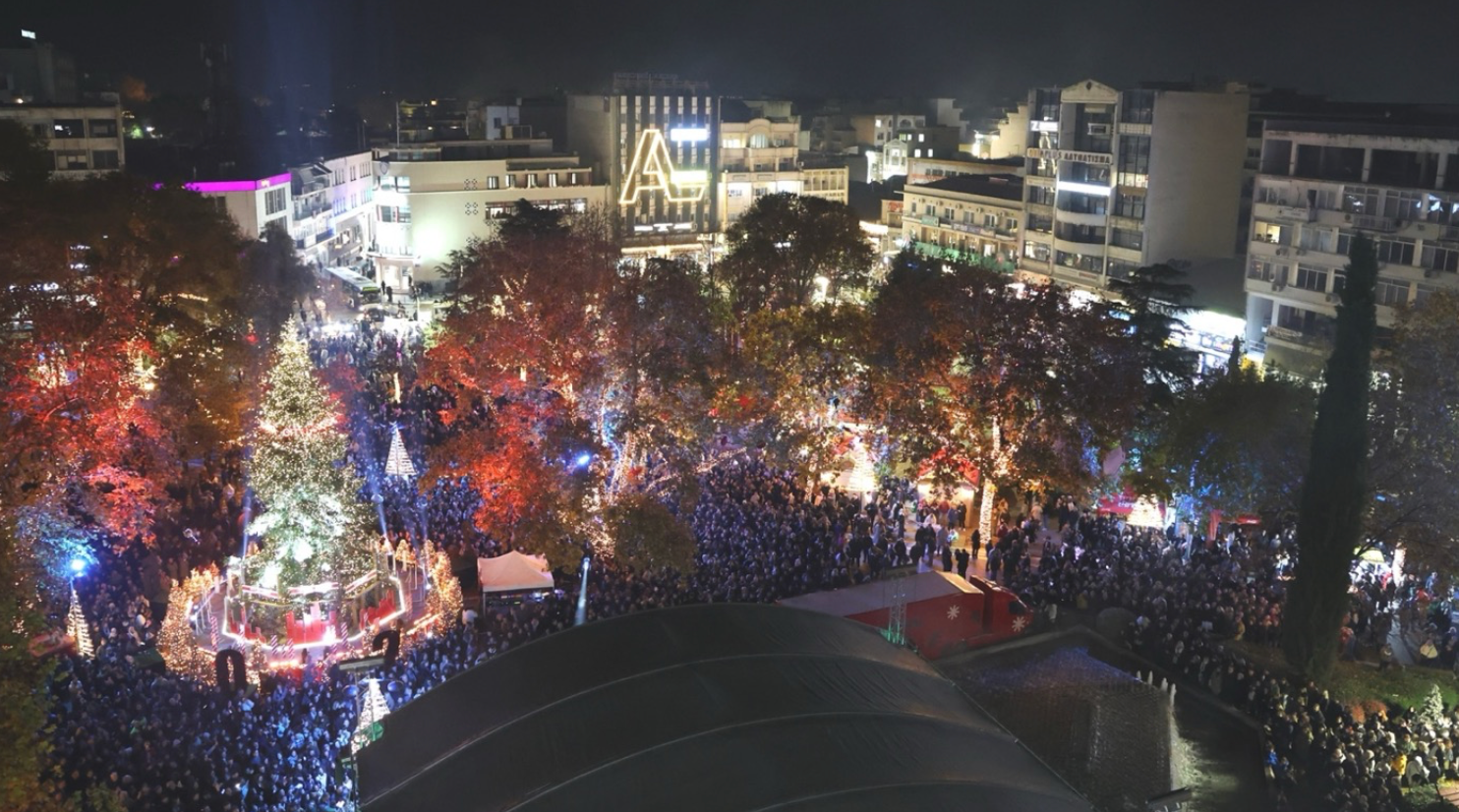 Χιλιάδες κόσμου κατέκλυσε την Κεντρική πλατεία της Λάρισας για να παρακολουθήσει τη φαντασμαγορική τελετή φωταγώγησης του χριστουγεννιάτικου δέντρου του Δήμου Λαρισαίων, το βράδυ της Τετάρτης.