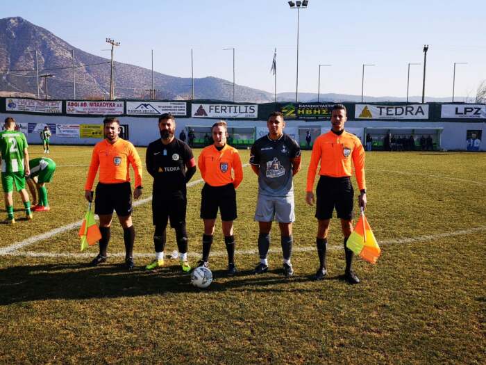 Τον αγώνα διηύθυνε η Αλεξάνδρα Δεληγιάννη (συνεργάτες της οι Μιλτιάδης Μπουρονίκος – Δημήτρης Μίχος), η οποία στο 65′ διέκοψε την εξέλιξη του παιχνιδιού, προκειμένου να ηρεμήσουν τα πνεύματα στην κερκίδα.