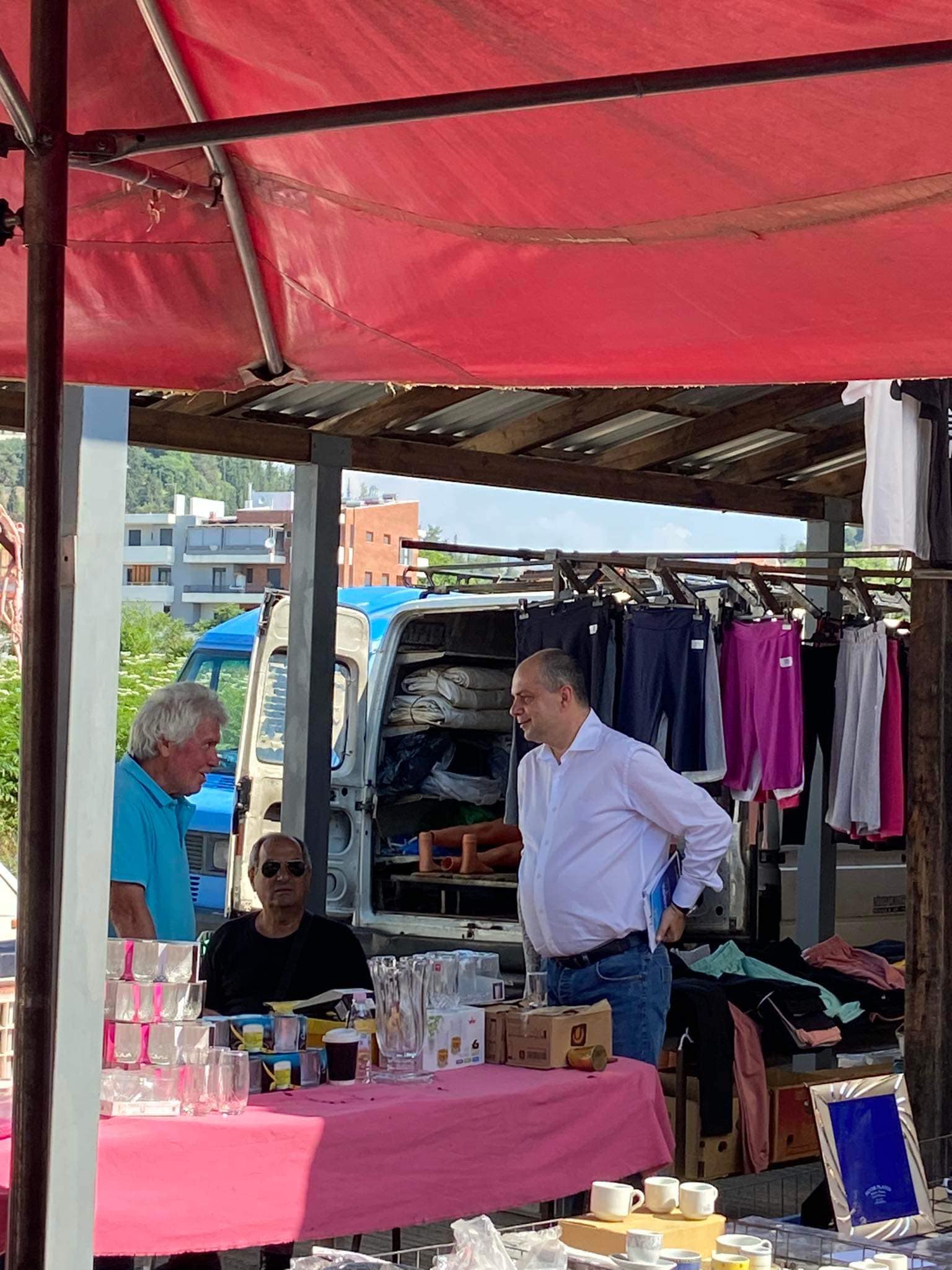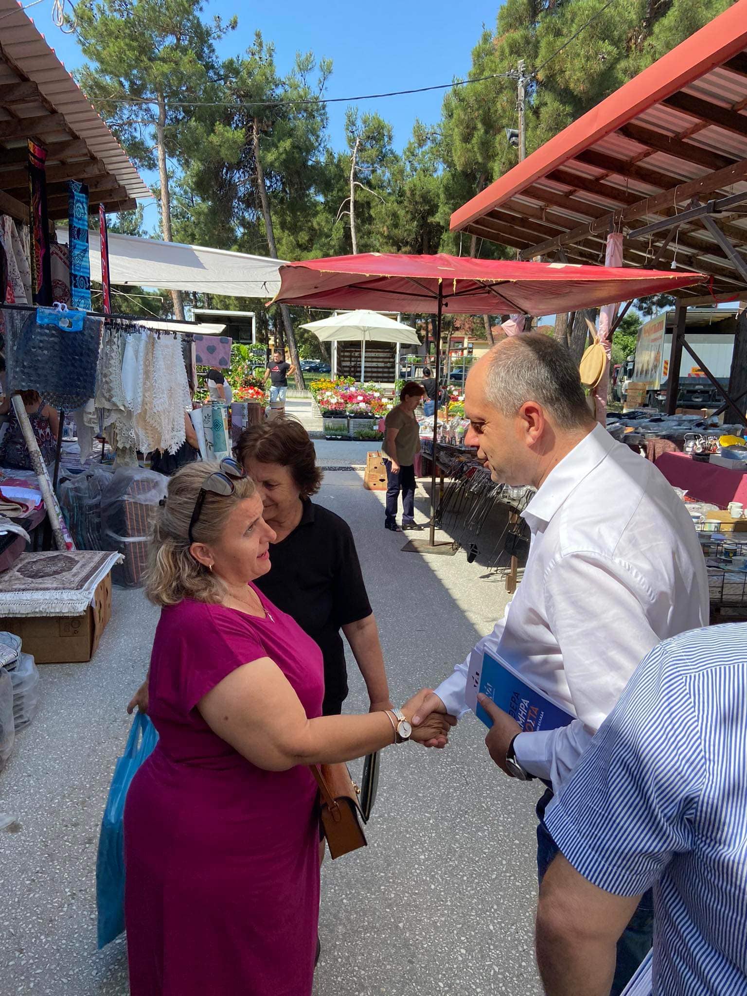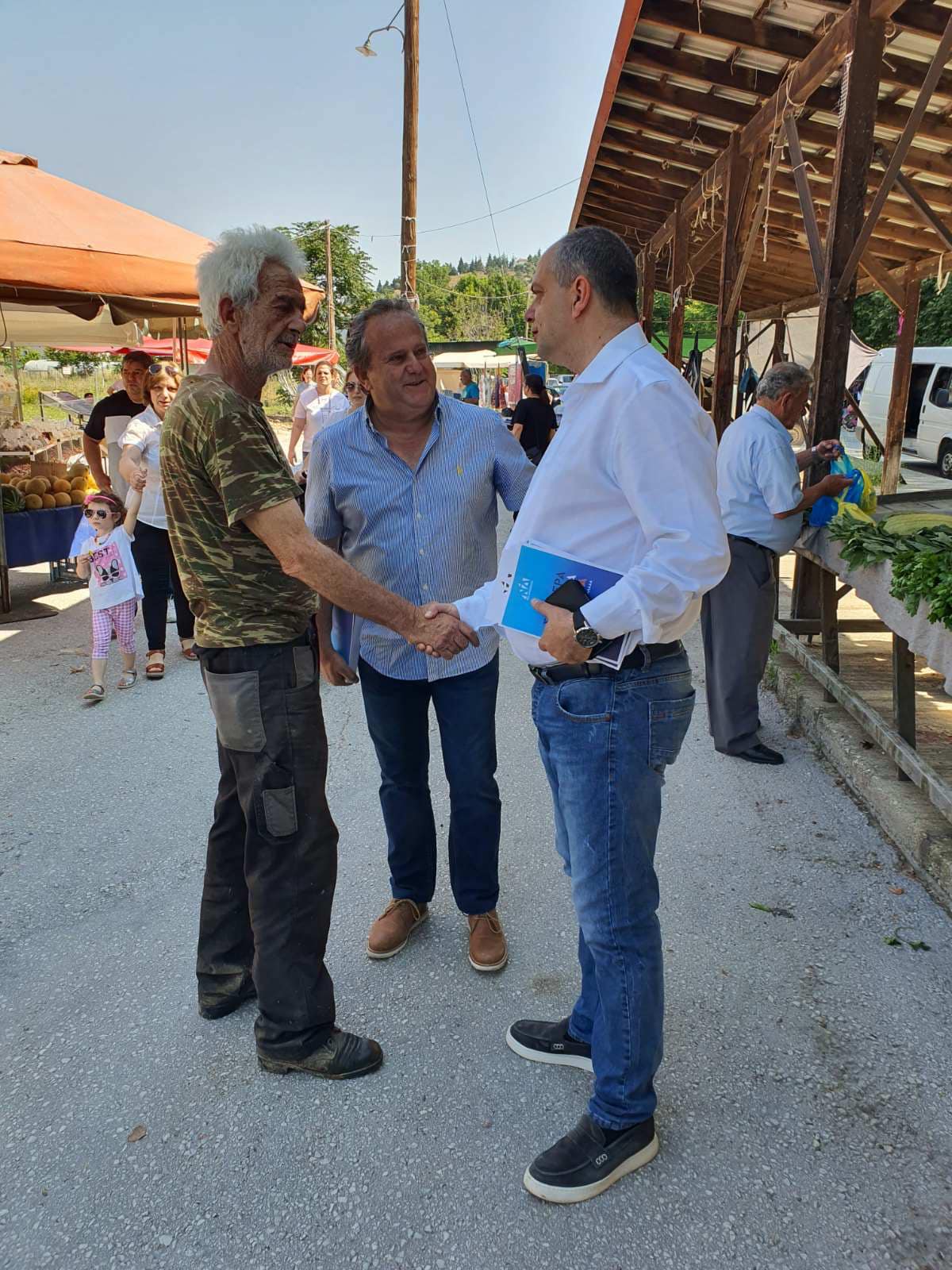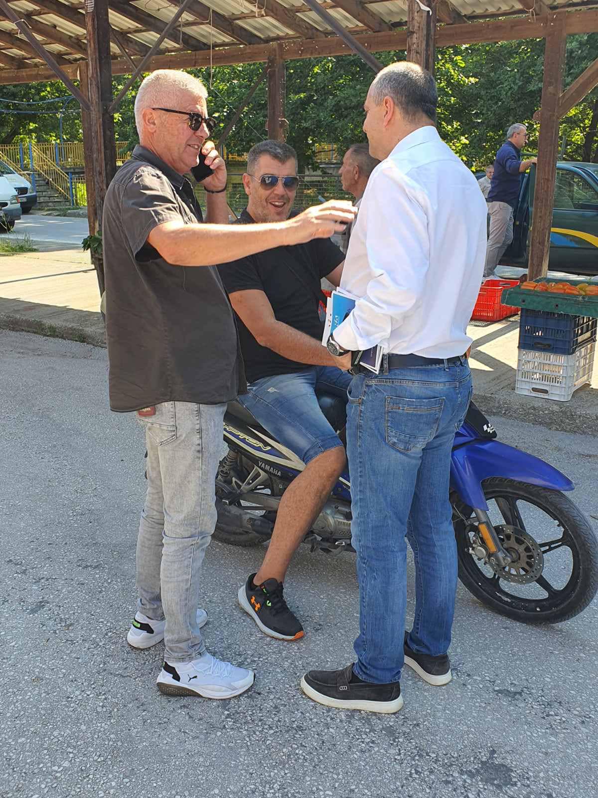 Το κλιμάκιο, αρχικά, πραγματοποίησε επίσκεψη στη λαϊκή αγορά της πόλης, ενώ στη συνέχεια κατευθύνθηκε στην αγορά της πόλης και συγκεκριμένα στην κεντρική πλατεία.