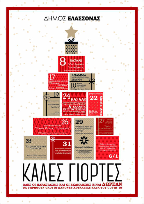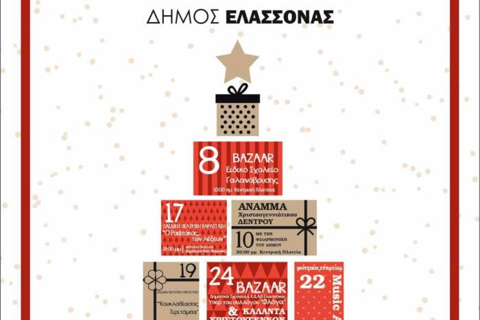 Ο Δήμος Ελασσόνας και η Αντιδημαρχία Πολιτισμού θέλοντας να συμβάλει στο εορταστικό κλίμα των ημερών, οργανώνει ένα πλούσιο πρόγραμμα πολιτιστικών εκδηλώσεων από αυτή την εβδομάδα και καθ’ όλη τη διάρκεια των εορτών έως και τα Θεοφάνια.