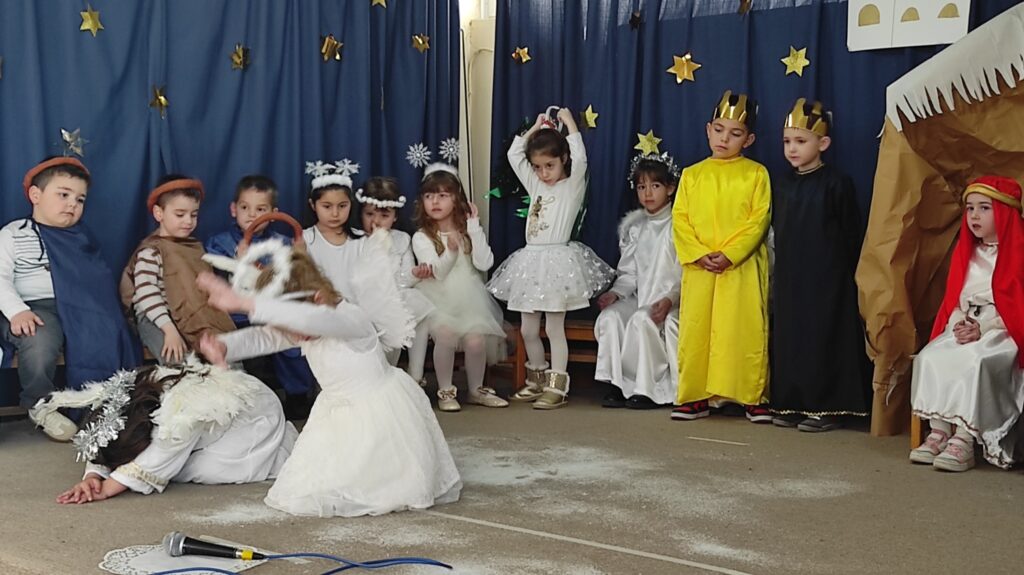 Τα παιδιά μας, με αγνότητα και ενθουσιασμό, ζωντάνεψαν τη Θεία Γέννηση μέσα από θεατρικά δρώμενα, τραγούδια και ποιήματα. Με στολές αγγέλων, ποιμένων και μάγων, μας μετέφεραν στη φάτνη της Βηθλεέμ, θυμίζοντάς μας αξίες όπως η αγάπη, η ταπεινότητα, η προσφορά και η ελπίδα.