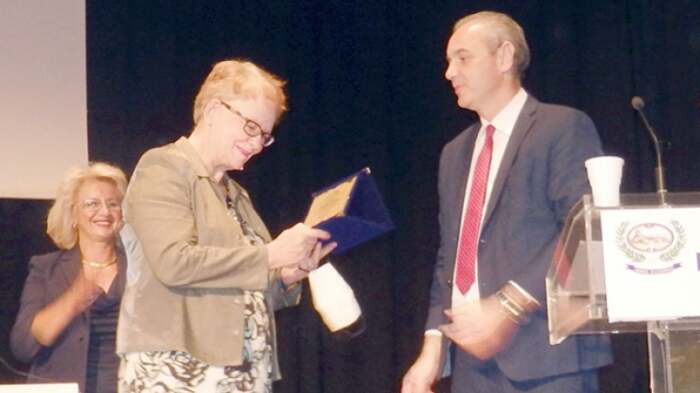 Προχθές, πρώτη μέρα του Συνεδρίου, ο δήμαρχος Ελασσόνας Νίκος Γάτσας απένειμε τιμητικές πλακέτες στον ιστορικό ερευνητή – εκδότη του «Θεσσαλικού Ημερολογίου» Κώστα Σπανό και στην προϊσταμένη της Εφορείας Αρχαιοτήτων Λάρισας Σταυρούλα Σδρόλια για την υποστήριξη και την πολύτιμη συμβολή τους στη διεξαγωγή του 1ου Συνεδρίου Τοπικής Ιστορίας Δήμου Ελασσόνας, αλλά και στη συνεχή συνεργασία τους και βοήθεια στον Δήμο Ελασσόνας.