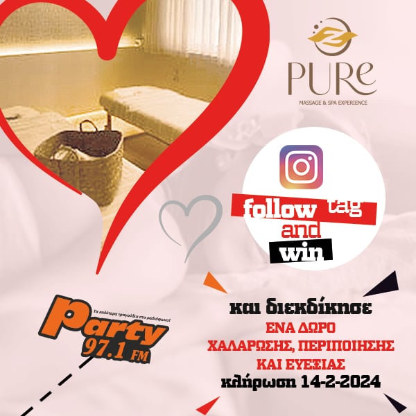 Ο Party 97.1 και το Pure Massage & Spa Experience σου κάνουν δώρο ένα μοναδικό δώρο για τη γιορτή του Αγίου Βαλεντίνου.