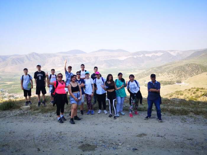 Οι μαθητές συνοδευόμενοι από τους καθηγητές του σχολείου κ Αράρ Δαυίδ και Βλιώρα Παρασκευή περπάτησαν 1 ώρα μέχρι να φτάσουν στο εξωκλήσι που βρίσκεται στην κορυφή του βουνού που δεσπόζει ψηλά πάνω από το χωριό.