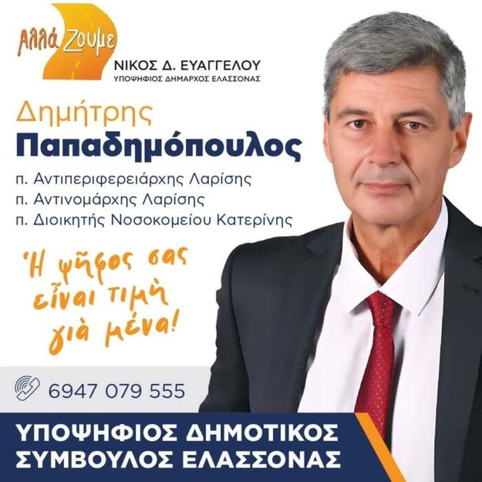 Καὶ στὴν πόλη, καὶ σὲ ὅλη τὴν ἐπαρχία Ἐλασσόνας, θησαυρισμένος πλοῦτος ὀμορφιᾶς, ἱστορίας, πολιτισμοῦ καὶ παραγωγικῆς δυνατότητας, ποὺ πρέπει νὰ μᾶς προσδιορίζει καὶ νὰ μᾶς ἐμπνέει περηφάνια, αἰσιοδοξία, αὐτοπεποίθηση, αἴσθημα εὐθύνης καὶ ὄρεξη γιὰ ἐργασία.