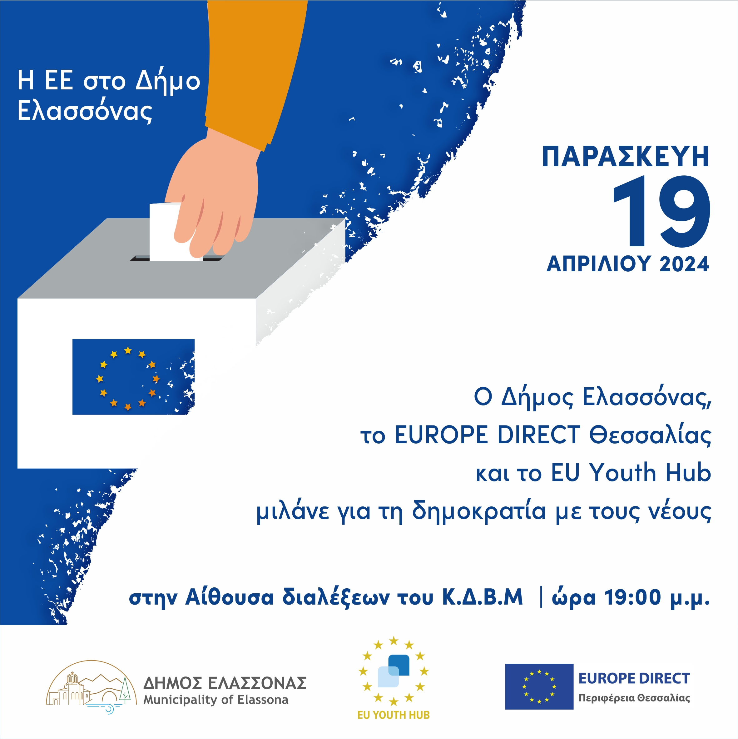 Συγκεκριμένα ο Δήμος Ελασσόνας, το γραφείο Europe Direct Περιφέρειας Θεσσαλίας και το “EU Youth Hub” θα πραγματοποιήσουν ενημερωτική ημερίδα με σκοπό την ενημέρωση των νέων για τη δημοκρατία και τις ευρωεκλογές, καθώς επιβάλλεται όσο ποτέ άλλοτε οι νέοι και οι νέες στην Ευρώπη να συμμετάσχουν ενεργότερα στην κοινωνία και να «δώσουν φωνή στο όραμά τους», όπως αναφέρει και το κεντρικό μήνυμα της φετινής καμπάνιας ενημέρωσης.