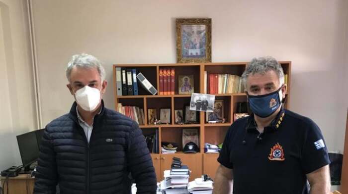 Ο ιδιοκτήτης της λαρισινής επιχείρησης κ. Δημήτρης Ευθυμίου παρέδωσε σήμερα στον Διοικητή της Πυροσβεστικής Υπηρεσίας Λάρισας, Πύραρχο Ζήση Μπρούζα 500 μάσκες για τις ανάγκες των πυροσβεστών. Από την πλευρά του ο διοικητής της Π.Υ.Λ. ευχαρίστησε τον γνωστό Λαρισαίο επιχειρηματία για την προσφορά του στο Σώμα και του έδωσε ως αναμνηστικό δώρο μια μάσκα της Πυροσβεστικής.