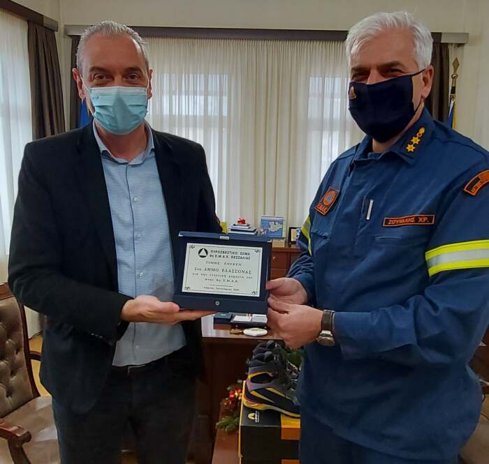 Ο διοικητής της μονάδας από την πλευρά του, χάρισε μια αναμνηστική πλακέτα στο δήμαρχο Ελασσόνας και τον ευχαρίστησε για τη συνεργασία, δηλώνοντας ότι η δωρεά θα βοηθήσει ακόμη περισσότερο το έργο των πυροσβεστών της ΕΜΑΚ.