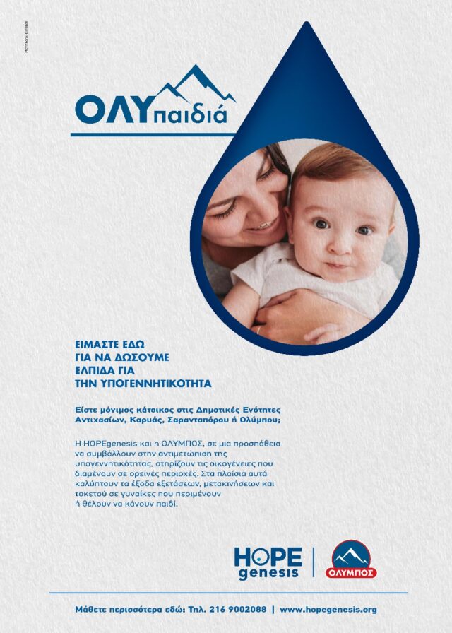 Ο Δήμος Ελασσόνας έθεσε υπό την αιγίδα του το πρόγραμμα δράσης της HOPEgenesis για την καταπολέμηση της υπογεννητικότητας και οι ενδιαφερόμενοι μπορούν να ζητήσουν περισσότερες πληροφορίες από το Τμήμα Κοινωνικής Πρόνοιας στο τηλέφωνο 2493350224.