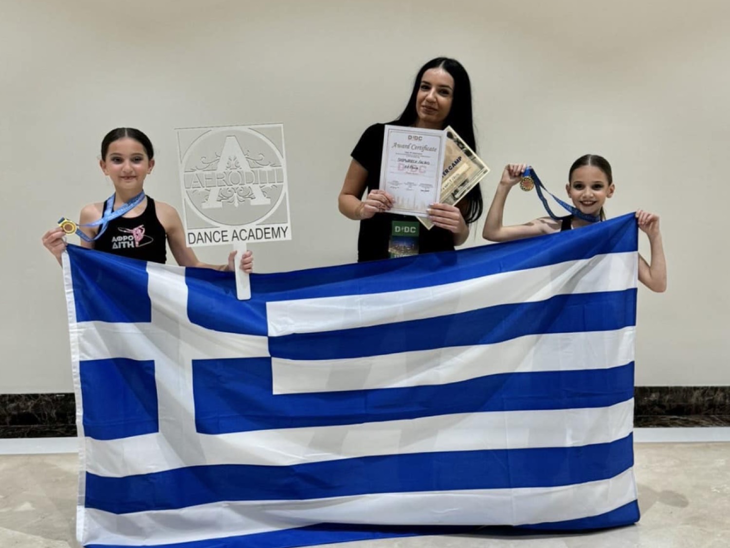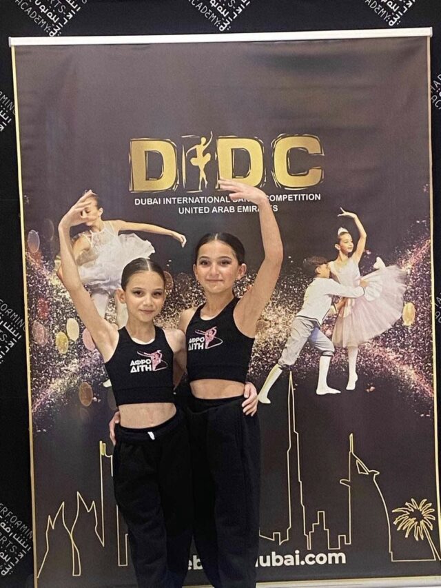 Πρώτη θέση η ελληνική συμμετοχή στο Dubai International Dance Competition και βράβευση με μια ακόμη υποτροφία. Όλα αυτά σε international διαγωνισμό χορού στο εξωτερικό. Πρόκειται για τις Δαγκλή Σταυρούλα και Στραβοκώστα Κατερίνα και την δασκάλα τους Ραφαέλα Χουρίδη.