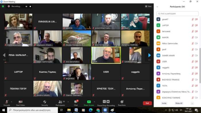 Αυτή τη στιγμή, διεξάγεται για πρώτη φορά, μια ξεχωριστή τηλεδιάσκεψη, με τη συμμετοχή του Περιφερειάρχη, των Δημάρχων και των Επικεφαλής των Παρατάξεων σε όλους τους Δήμους του Νομού και στην Περιφέρεια, διοργάνωσε με πρωτοβουλία της η βουλευτής Λάρισας του Κινήματος Αλλαγής Ευαγγελία Λιακούλη, με θέμα «Οι ΟΤΑ του ν. Λάρισας, στην πανδημία και στην μετά την πανδημία εποχή – Προβλήματα και Προοπτική» και η οποία ξεκίνησε σήμερα το απόγευμα.