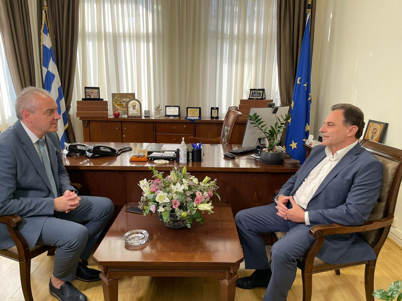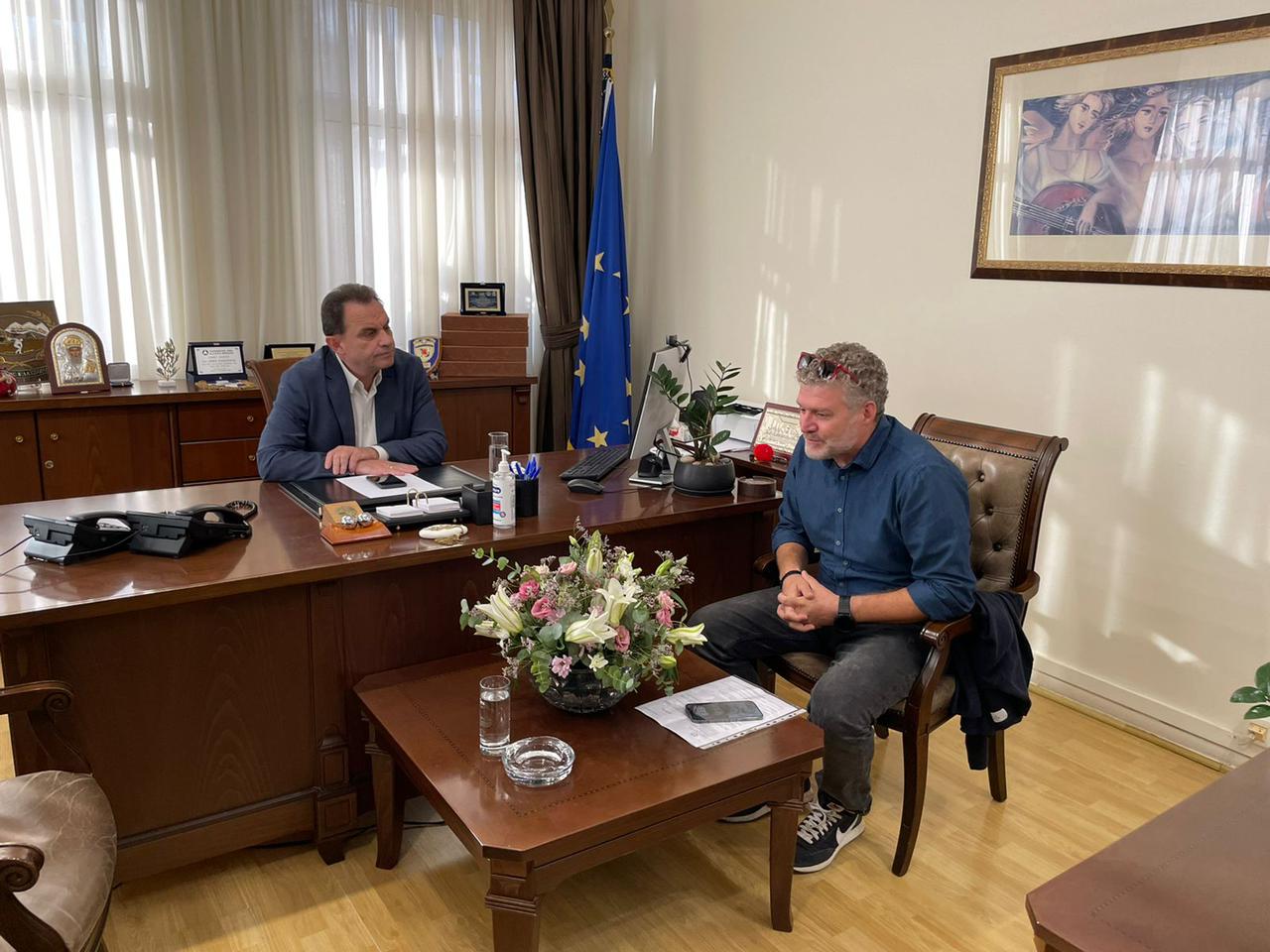 Στη συνέχεια ο κ. Γεωργαντάς επισκέφθηκε την κτηνοτροφική μονάδα Ζιάκου στην Ελασσόνα και κατόπιν στον δημαρχείο είχε συνάντηση με τον Δήμαρχο κ. Νίκο Γάτσα, καθώς και με τον Δήμαρχο Αγιάς κ. Αντώνη Γκουντάρα με τον οποίο συζήτησε το πρόβλημα διάθεσης των μήλων της περιοχής μετά την επιβολή capitalcontrolsστην Αίγυπτο.