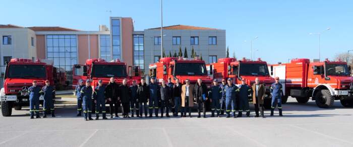 Οκτώ νέα πυροσβεστικά οχήματα εξοπλισμένα με δεξαμενές νερού και αφρού χωρητικότητας 4.000 λίτρων παρέδωσε σήμερα η Περιφέρεια στις πυροσβεστικές υπηρεσίες της Θεσσαλίας. Ακόμη δεκατέσσερα οχήματα πυροσβεστικού τύπου pick-up 4Χ4,με δεξαμενή νερού 500 λίτρων και για μεταφορά προσωπικού παραδίδονται τους επόμενους μήνες. Συνολικά η Περιφέρεια Θεσσαλίας ενισχύει με είκοσι δύο οχήματα τον στόλο της Πυροσβεστικής στη Θεσσαλία με έργο συνολικού προϋπολογισμού 3,2 εκατ. ευρώ που χρηματοδοτείται από το ΕΣΠΑ Θεσσαλίας 2014 -2020. Η τελετή παράδοσης – παραλαβής πραγματοποιήθηκε σήμερα στη Λάρισα παρουσία του Περιφερειάρχη Θεσσαλίας Κώστα Αγοραστού, του Διευθυντή της Περιφερειακής Διοίκησης Πυροσβεστικών Υπηρεσιών Θεσσαλίας, Αρχιπύραρχου Ευάγγελου Φαλάρα, του Αντιπεριφερειάρχη Π.Ε. Λάρισας Βασίλη Πινακά, των Αντιπεριφερειαρχών Απόστολου Μπίλλη και Κώστα Καλαμπάκα και των Εντεταλμένων Συμβούλων Γιώργου Λαδόπουλου, Απόστολου Κομνού και Στέλιου Δημότσιου.
