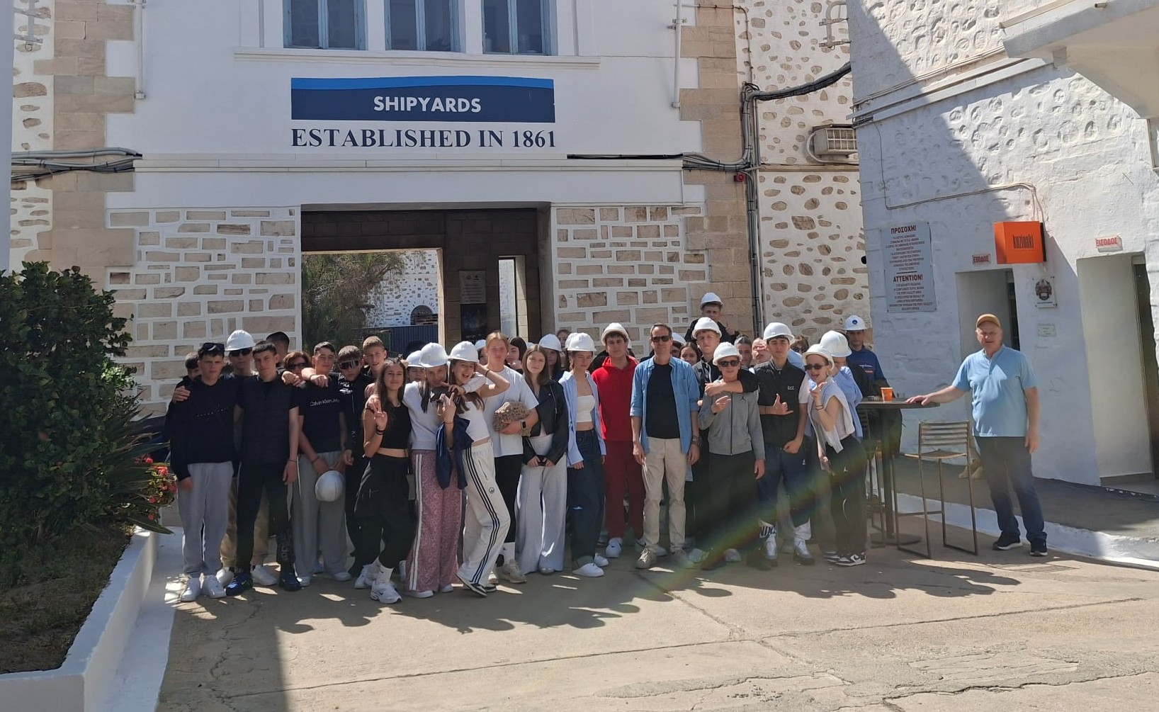 Οι μαθητές επισκέφθηκαν επίσης το Ναυπηγείο Νεώριο, όπου είχαν την ευκαιρία να δουν από κοντά τη διαδικασία επισκευής πλοίων και να γνωρίσουν τη σημασία της ναυπηγικής δραστηριότητας για την οικονομία και την ιστορία του νησιού. Τέλος, ξεναγήθηκαν σε εργαστήριο παραδοσιακών λουκουμιών, ενός από τα πιο χαρακτηριστικά προϊόντα της Σύρου. Εκεί έμαθαν για την παρασκευή τους, τα υλικά που χρησιμοποιούνται και τη σημασία της διατήρησης της τοπικής παράδοσης.