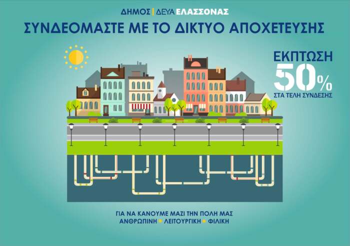 Με απόφαση του Διοικητικού Συμβουλίου της Δημοτικής Επιχείρησης Ύδρευσης – Αποχέτευσης (ΔΕΥΑ) Ελασσόνας μειώνεται κατά 50% το κόστος στα τέλη σύνδεσης της αποχέτευσης στην πόλη της Ελασσόνας.