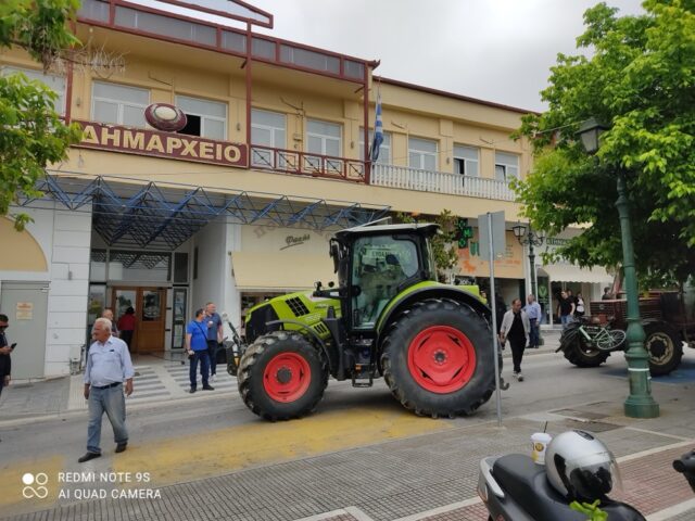 Ελασσόνα: Αγρότες διαμαρτυρήθηκαν με τα τρακτέρ έξω από το δημαρχείο για την άρδευση (ΦΩΤΟ)