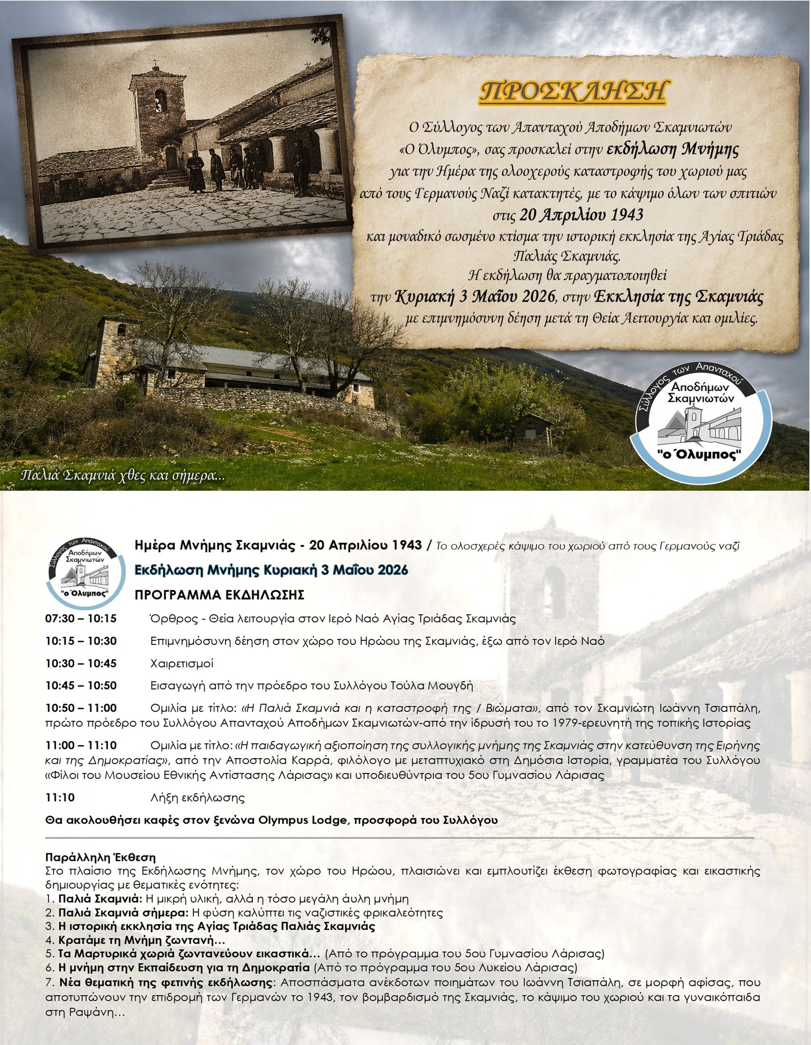 Ο Σύλλογος των Απανταχού Αποδήμων Σκαμνιωτών αναφέρει στην ανακοίνωσή του: