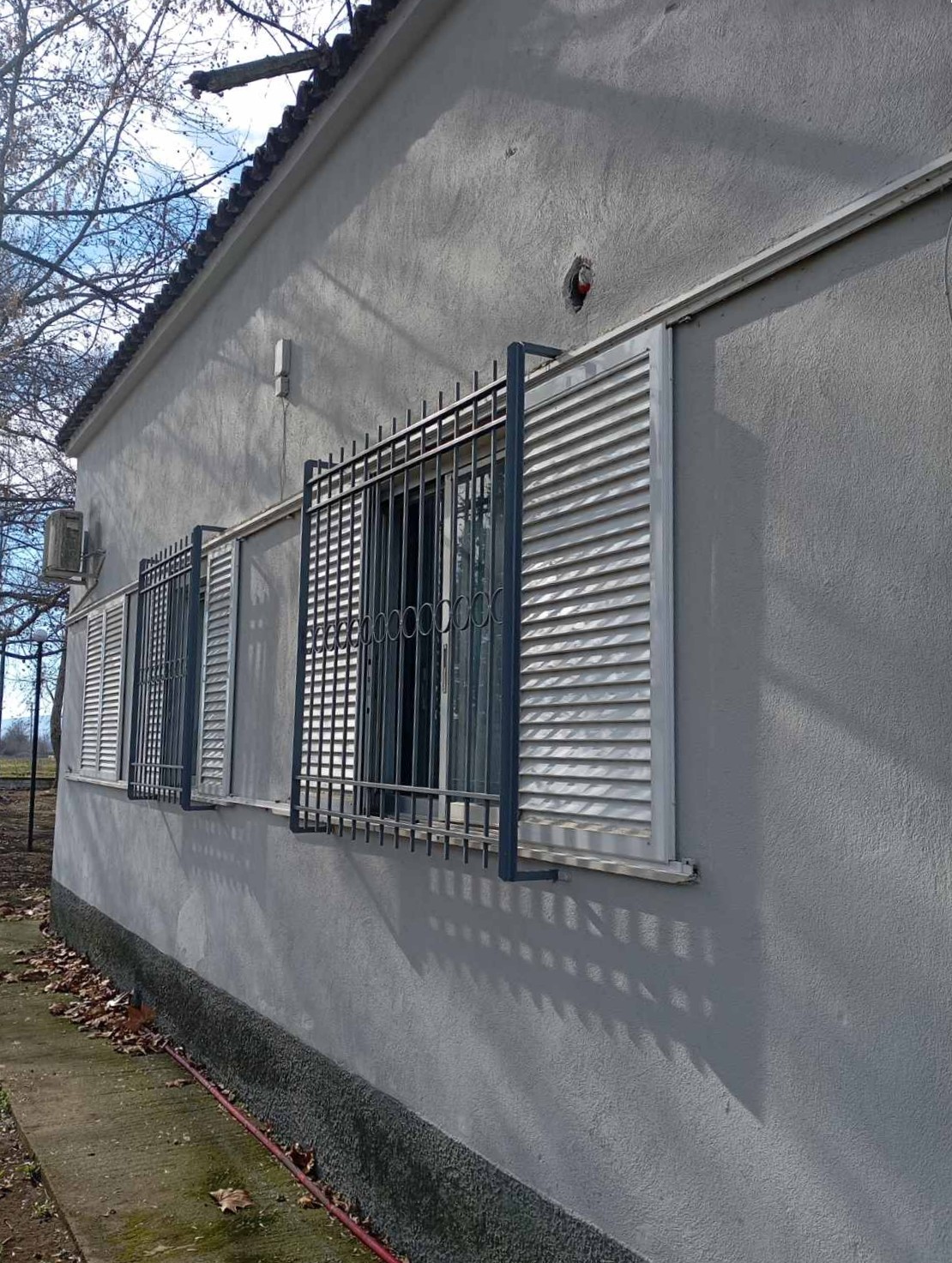 Συντήρηση μεταλλικών θυρών και παραθύρων: αποσκωρίωση, εφαρμογή αντισκωριακών υλικών, βαφή και αντικατάσταση φθαρμένων εξαρτημάτων.