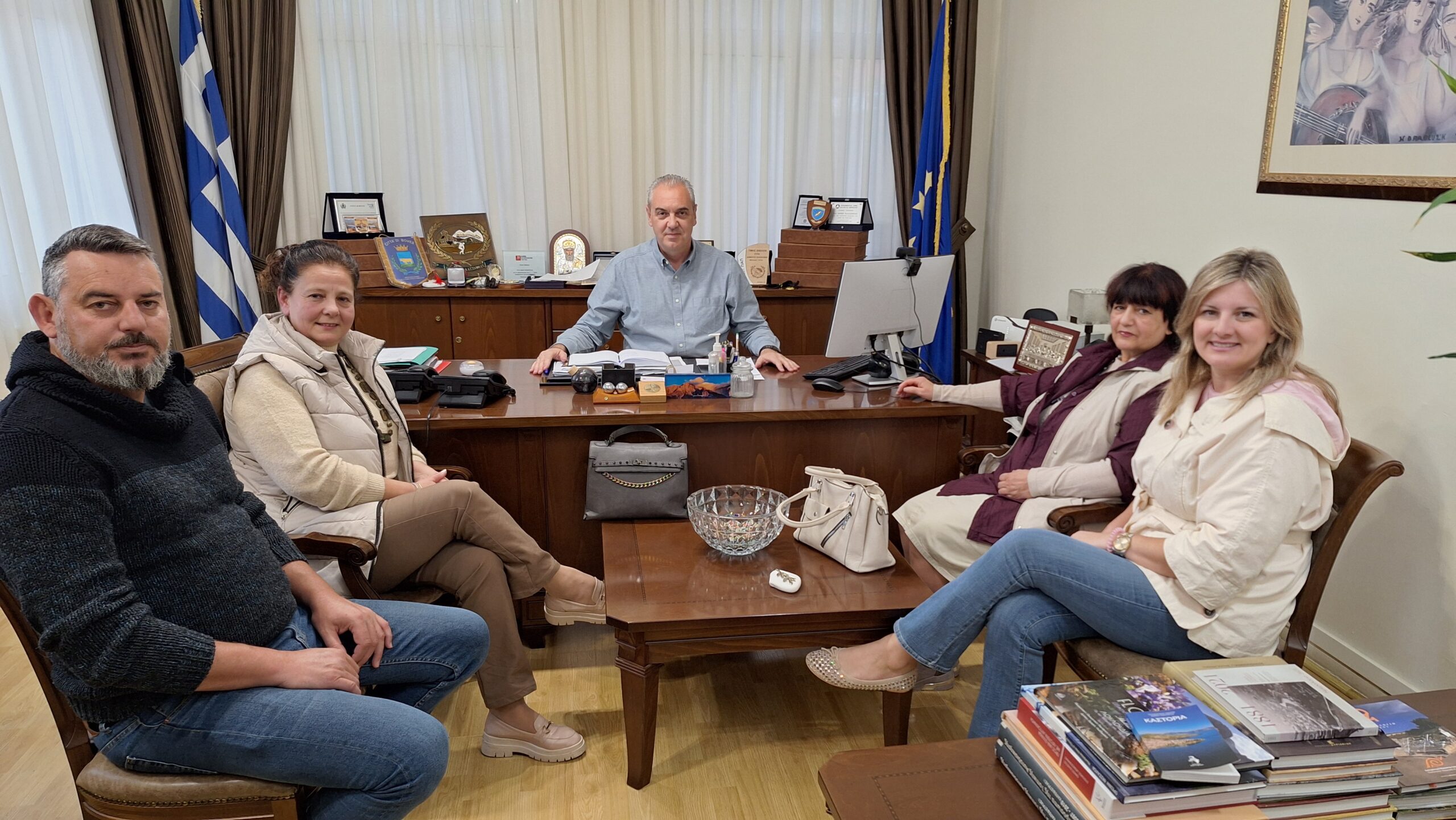 Στο πλαίσιο της ολοκλήρωσης του «1ου Λογοτεχνικού Διαγωνισμού Συγγραφής Διηγήματος, Παραμυθιού και Θεατρικού Κειμένου», αφιερωμένου στη μνήμη του Σπύρου Μπούμπα, δασκάλου και ιστορικού ερευνητή της τοπικής ιστορίας, πραγματοποιήθηκε συνάντηση του Διοικητικού Συμβουλίου του ΔΙ.Κ.Ε.Α.Ε.ΕΛ. (Δίκτυο Καλλιτεχνών και Επιστημόνων για την Ανάπτυξη της Επαρχίας Ελασσόνας) με τον Δήμαρχο Ελασσόνας, κ. Νίκο Γάτσα και την Αντιδήμαρχο Παιδείας & Άθλησης κ. Βιβή Γκουγκούλη.