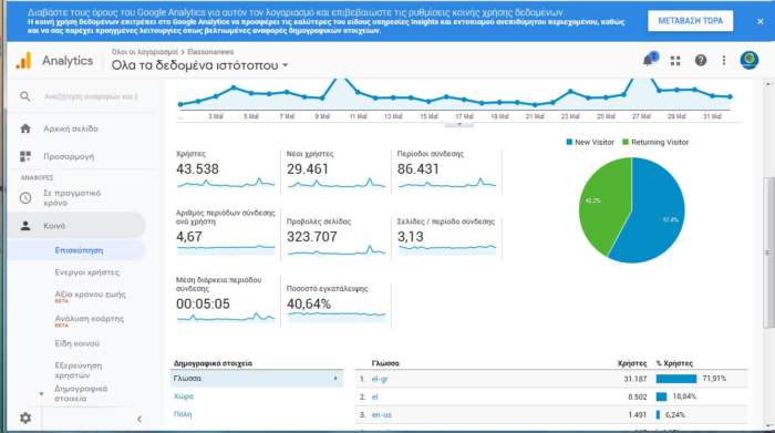 Δείτε το σχετικό πίνακα από την Google Analytics: