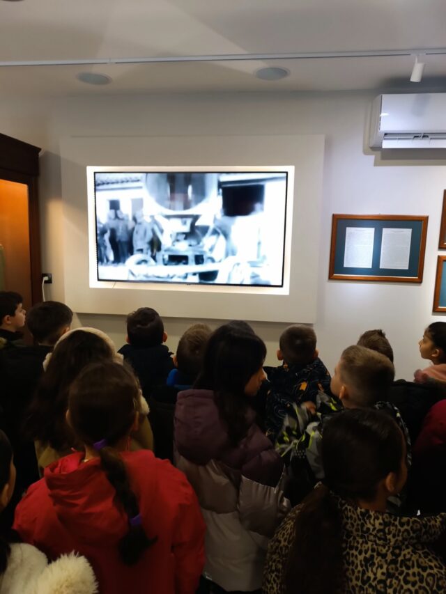 Εκεί έμαθαν μέσα από προβολή βίντεο τα γεγονότα της απελευθέρωσης της περιοχής της Ελασσόνας, τον Οκτώβριο του 1912 από τους Τούρκους.Στη συνέχεια επισκέφθηκαν το οινοποιείο του κ.Αθανασίου Μηνά στη Μηλέα όπου έμαθαν τα στάδια παραγωγής του κρασιού από το αμπέλι μέχρι την εμφιάλωσή του! Ευχαριστούμε την οικογένεια του κ.Μηνά για τη φιλοξενία!!